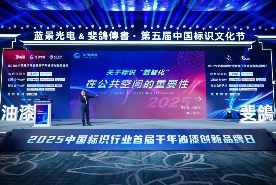 本届文化节以“大道不孤,识见未来”为主题,聚焦行业智能化转型之路。在题为《“标识数智化”在公共空间中的重要性》的演讲中,鸽恩科技董事长、斐鴿傳書品牌创始人方吉书先生基于全国深度调研成果,系统剖析了当前标识行业在安全管理难、运维成本高、运营效率低三大共性痛点,并分享了鸽恩科技旗下,以AIOT智能物联网技术为坚实底座,历经六年所打造的【斐鸽傳書】标识数智化平台。表达了其助力传统的标识与灯箱,从1.0的“生产制造”时代,迈向3.0的“智慧运营”新时代,助力行业实现安全、降本、增效的核心价值的长远目标。
