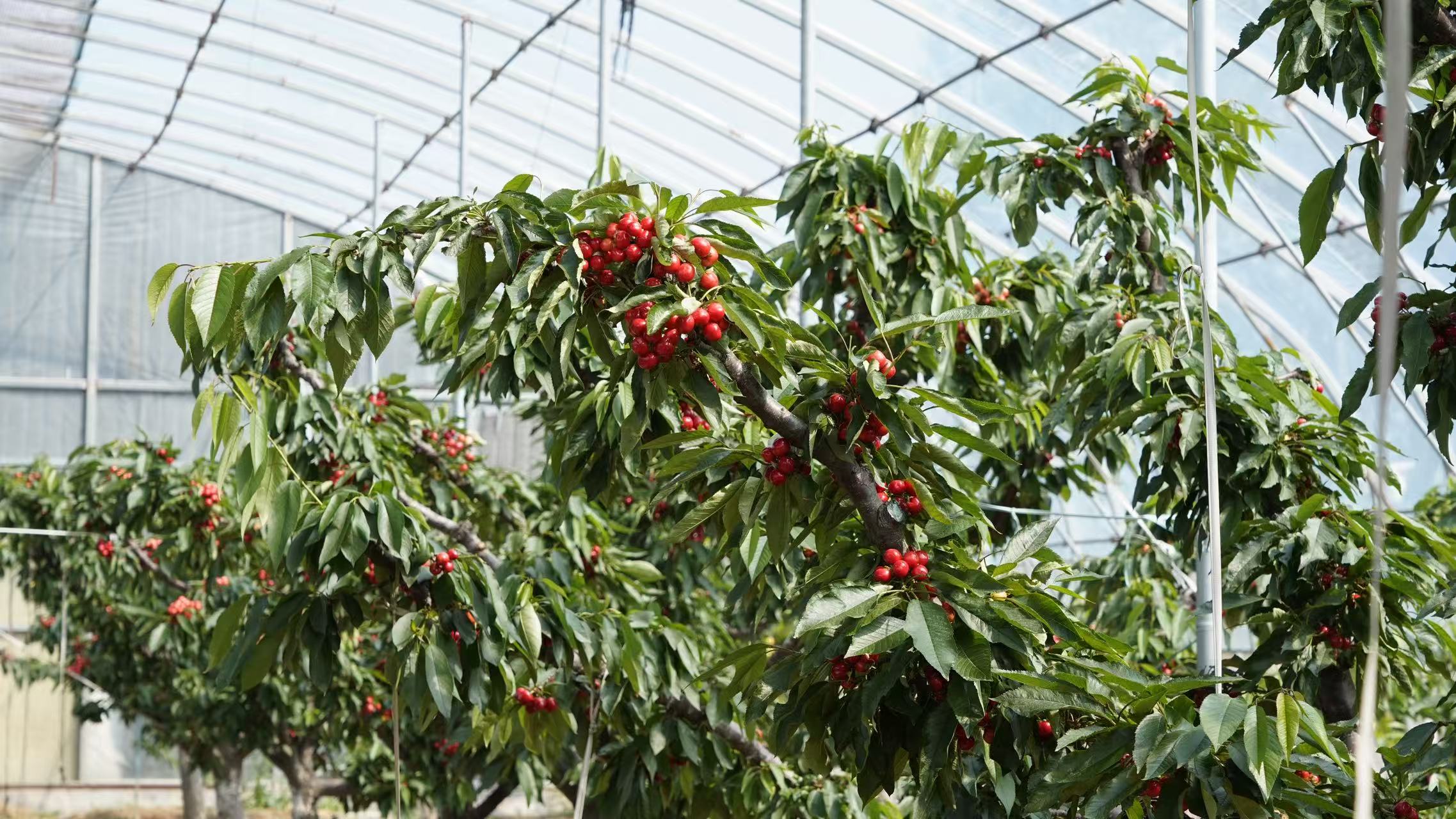 大棚内,工人们正在进行浇水、修枝等管护工作。负责人介绍道:“我们的樱桃从4月份开始陆续上市,以现场采摘体验为主,少量果品外销。五一假期将迎来采摘高峰,不少老客户已经提前预约。”