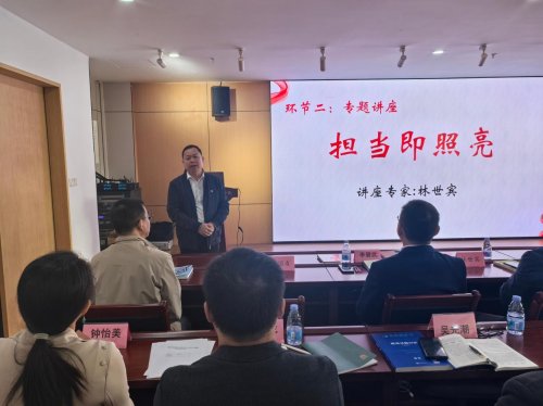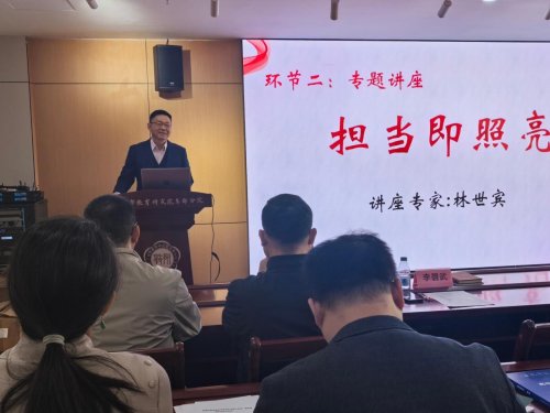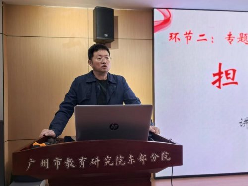 研修核心环节,工作室特邀中国作家协会会员、广东省作家协会创研部主任、著名诗人林世宾先生作主旨讲座。林世宾先生以《担当即照亮》为题,从文学、哲学、美学等多维视角,深入剖析了“生命”“责任”“坚守”等核心概念的深层联系。他指出,真正的担当是生命主体意识的自觉觉醒,是内在光能的主动释放,能够照亮自身与前行的道路。讲座将“担当”从职业要求提升至生命价值的高度,为教育工作者提供了全新的思考维度,引发了广泛共鸣。