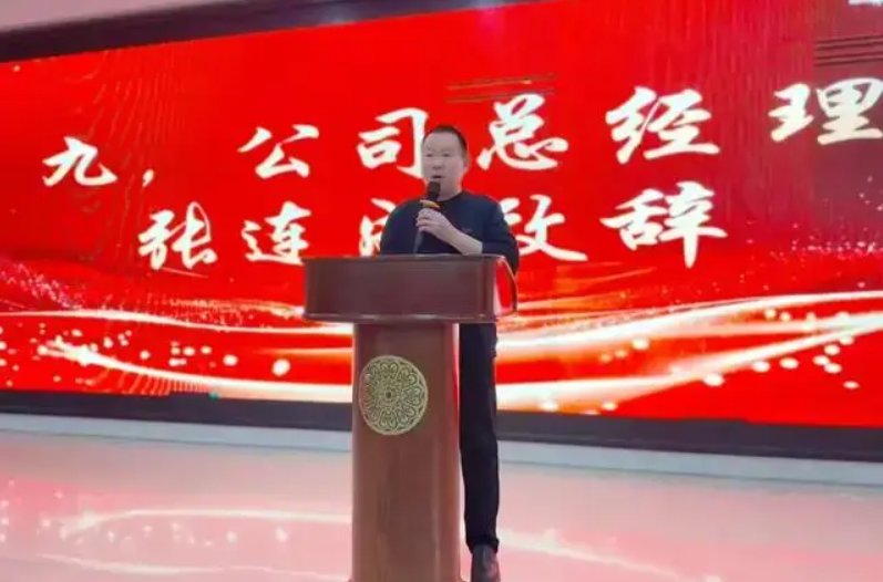朗陵酒业总经理张连成在致辞中回顾了公司的年度战绩,展望了2026年发展规划。张总表示,朗陵罐酒始终恪守“酿真人、造真酒、献真情、求真知”的企业精神,在传承中创新,在创新中发展。相信凭借朗陵罐酒过硬的品质底蕴,与在座各位强大的市场开拓能力和彼此之间的深厚情谊,大家一定能够在新的一年里乘风破浪,再创辉煌。