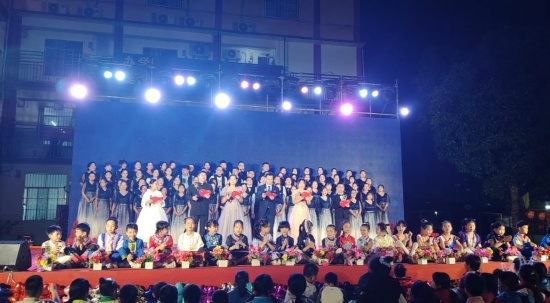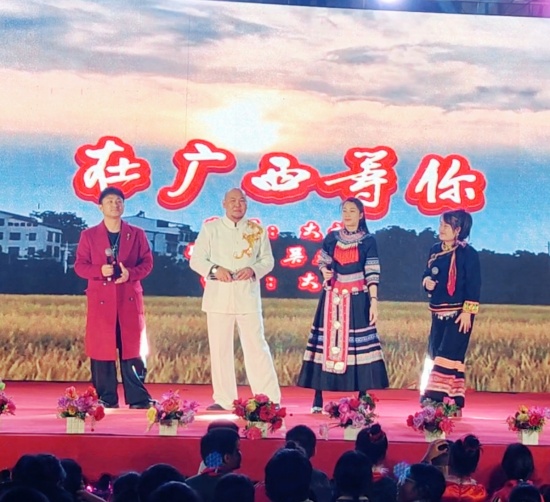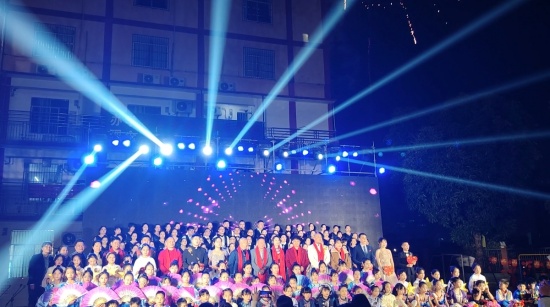 舞台之上,精彩轮番上演。六年级学生代表表演的红色主题舞蹈《万泉河水》传递初心力量,大效、小倩、梦歌、小兰四位歌手联袂献唱《多谢了》《在广西等你》,婉转歌声里满含壮乡风情,引得全场掌声阵阵;李结珍老师带着两个幼儿园的学生,用高亢的原声态,演绎了自己创作的歌曲《壮乡歌不断》,将浓郁的地域文化气息和动听嘹亮的歌声,把晚会又一次推向高潮。师生联袂演绎的《光亮》《夜空中最亮的星》展现师生风采。晚会现场,校领导为十年坚守、表现优异的教师颁发荣誉奖状,温情与敬意交织,掌声经久不息。
