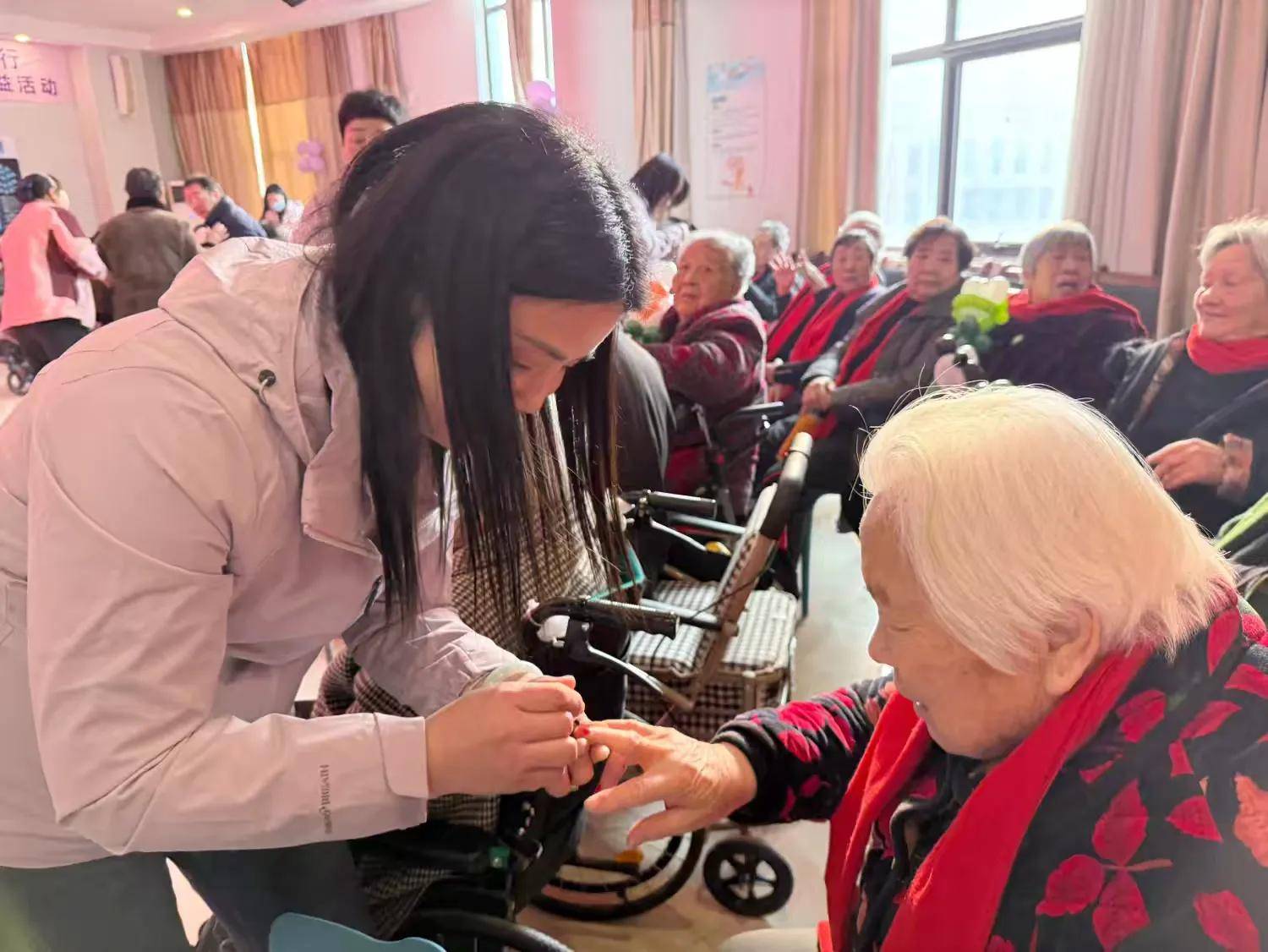 俗话说:“过了腊八就是年”。活动现场,大家欢聚一堂,在歌声与舞蹈的深情演绎中愉悦身心,在腊八粥香与书法墨香中感受年味。宋晓慧与四组女企业家一道,热情地给老人们修剪指甲、涂抹护甲油,并相伴写下新年心愿、放飞孔明灯等,提供了温情满溢的贴心陪伴。大家身挨身坐、心贴心聊,在欢声笑语中共同度过了一段欢乐祥和的美好时光。宋晓慧表示,能够贡献自己的一份爱心和力量,让老人感到开心和温暖,自己心里也感到十分欣慰。