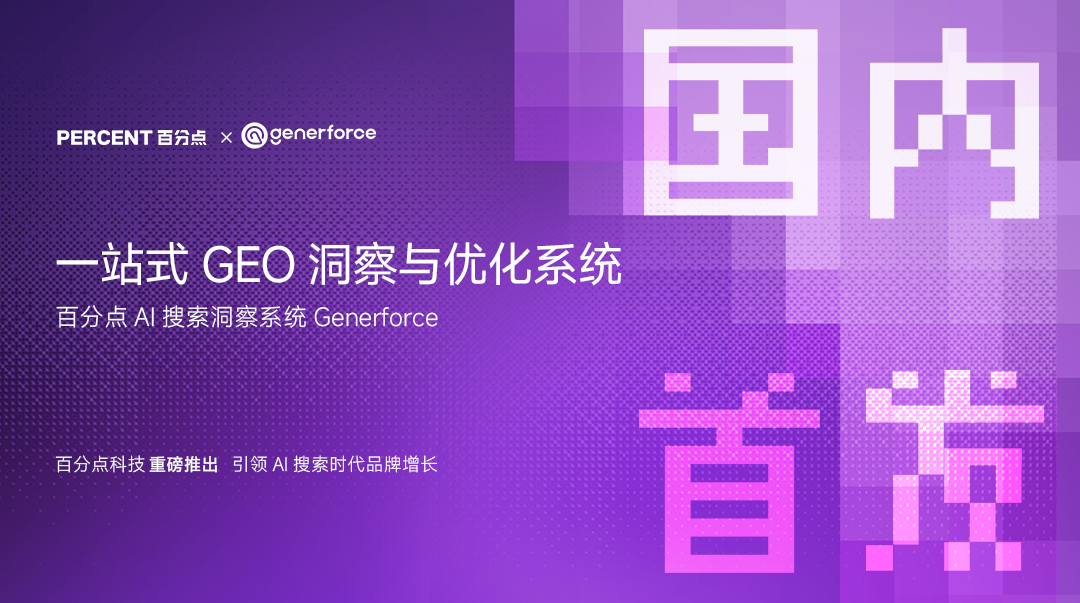 今日,国内领先的数据智能与AI应用企业百分点科技正式发布中国首个AI 原生一站式 GEO(生成式引擎优化)洞察与优化系统——百分点AI搜索洞察系统(Generforce)。该产品专为生成式AI时代打造,旨在帮助企业全面洞察AI心智、智能优化内容策略、精准量化AI影响力,实现从被动适应到主动掌控的战略升级。Generforce的推出,标志着中国企业拥有了体系化的GEO解决方案,助力品牌科学管理与持续提升在AI搜索生态中的认知表现与竞争优势。