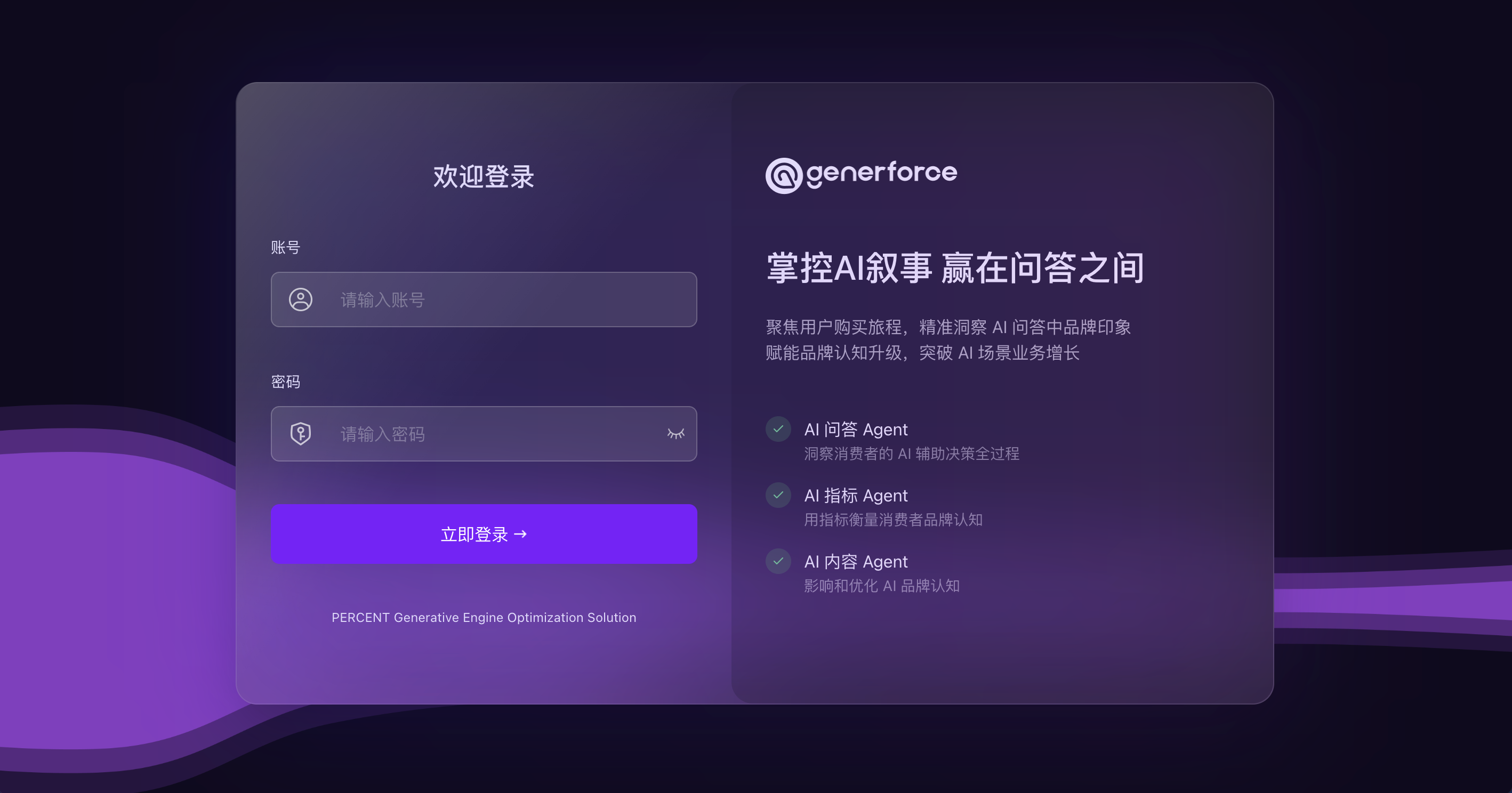 Generforce并非传统营销工具的简单AI化升级,而是一款从架构底层即为生成式AI环境而设计的原生产品。其核心由AI问答、指标、内容三大智能体构成,通过自主协同机制,重构了“洞察—诊断—策略—优化—追踪”的完整GEO业务闭环,实现从理解AI心智到影响AI叙事的端到端智能化运营。