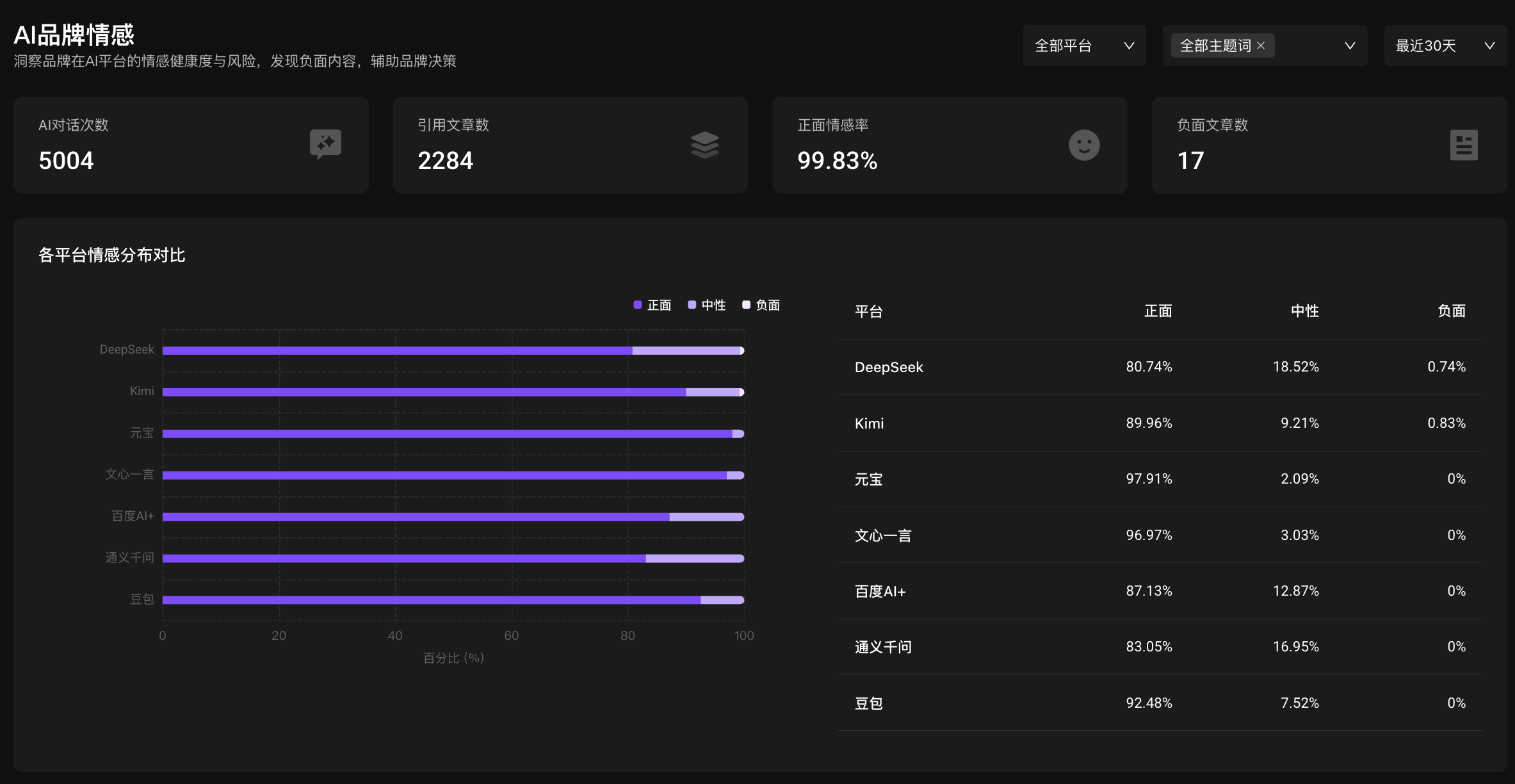 防御场景:全天候预警与防护建立实时监测机制,追踪AI生成内容中的品牌情感变化,精准溯源负面信息,及时识别竞品贬损行为,为上市公司、金融机构等声誉敏感型企业构建可靠防护体系。