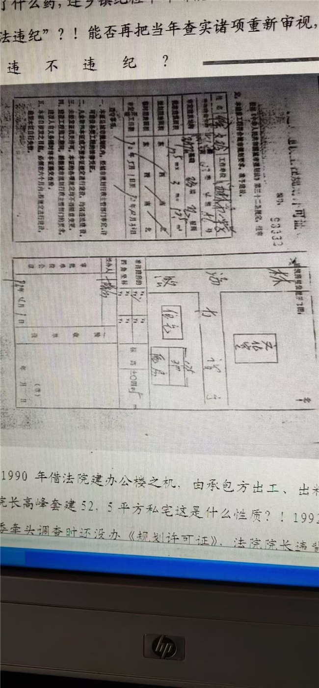 其二,1990年借法院建办公楼之机,由承包商出工,出料为法院院长套建52.5平米私宅是什么性质?!怎能用“属于朋友帮工”为其免责?!?!?!