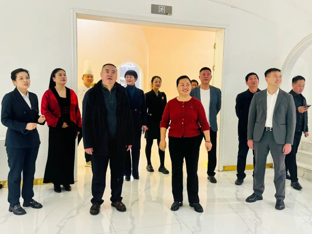 在喜盈门·锦曼酒店,协会一行在喜盈门董事长刘红军、喜盈门·锦曼酒店总经理姬银环的热情陪同下,对酒店的厨房、特色包厢以及客房等进行了参观考察。双方就酒店的品牌定位、客户服务流程以及企业文化建设等方面进行了深入交流,协会领导对喜盈门·锦曼酒店温馨的服务氛围和智能创新的硬件设施给予了充分肯定。