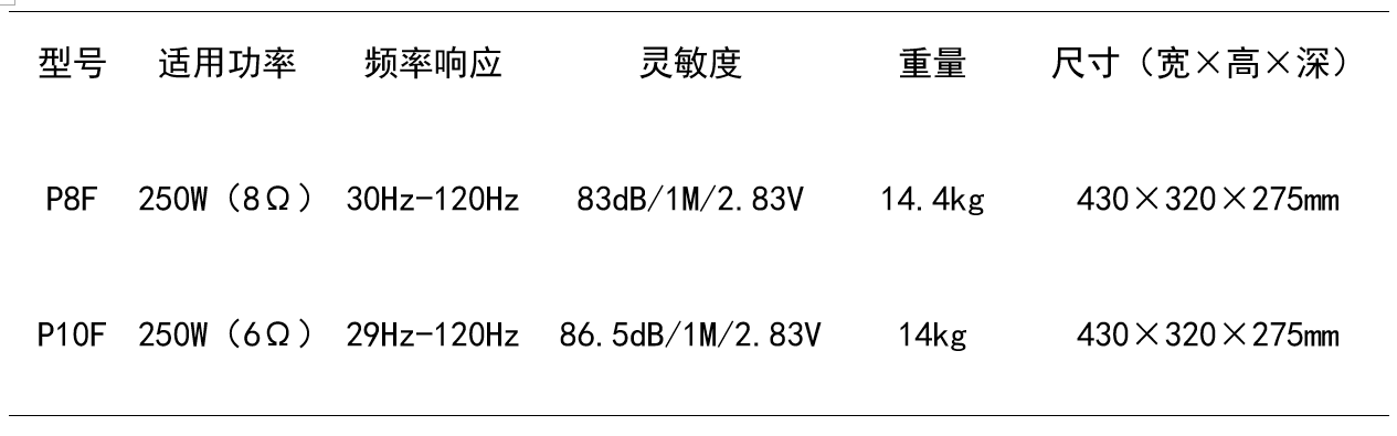 P10F:有源超重低音炮,以心跳式低频唤醒心潮澎湃。
