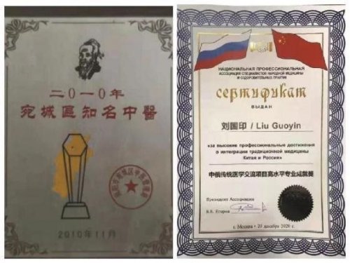 2012 年 8 月被河南省中医药学会授予“河南省仲景学术传承奖先进个人”;南阳市 “宛城区名中医”、“南阳市名中医”;
