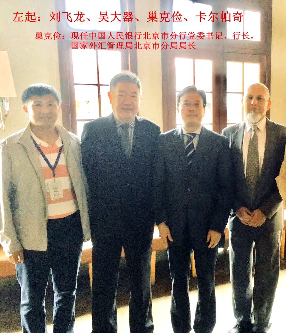 上图左起:刘飞龙(上海创韵)、吴大器参事、巢克俭区长、卡尔帕奇总领事。下图及公开信息显示,巢克俭先生已任中国人民银行北京市分行党委书记、行长。其在上海任职期间,为包括本活动在内的黄浦区重大文化交流项目提供了重要指导。