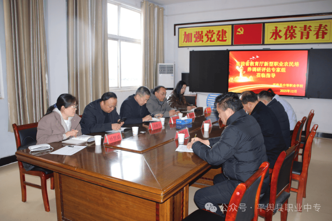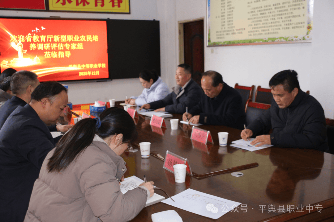 12月24日,河南省教育厅新型职业农民培养工作调研评估专家组一行5人,在组长郭国侠带领下莅临平舆县中等职业学校开展实地调研与评估指导。平舆县教育局党组成员、平舆县中等职业学校校长姚向阳、学校工会主席刘全林、学校招生就业办主任冯振兴及相关工作人员参与了此次调研汇报。