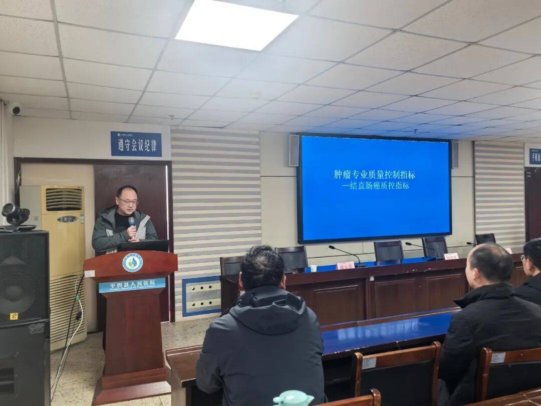 普外科主任冯驰对平舆县普外质控中心工作进行汇报。培训会上,普外科副主任王泰山、郭光辉先后分享《肝癌质控》《结直肠癌质控指标解读》 讲座内容翔实,案例生动,参会人员踊跃提问,现场学术氛围浓厚。与会人员纷纷表示,中心的成立为全县普外科同仁建立了“主心骨”,培训内容实用性强,对提升个人临床能力和科室质量管理水平具有重要指导意义。