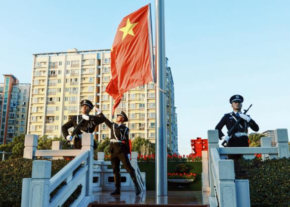 8时35分许,全体民警警容严整、整齐列队,伴随着雄壮激昂的《义勇军进行曲》,鲜艳的五星红旗冉冉升起、迎风飘扬。全体民警目光坚定、高唱国歌,歌声中饱含对伟大祖国的无限热爱,彰显着对党和人民的绝对忠诚,更凝聚着新时代公安队伍以强治理筑牢安全屏障、以实举措服务发展大局的坚定决心。