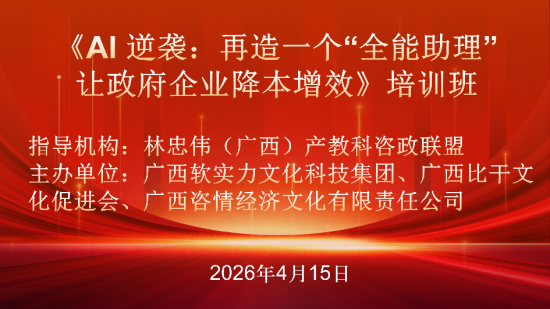 2.开发“AI+行业”系列精品课程。在通识培训基础上,咨政联盟将联合广西软实力文化科技集团,针对垂直领域开发定制课程:面向发改、工信系统的《AI辅助产业分析与规划》;面向卫健系统的《AI助力公卫管理与智能客服》;面向教育系统的《AI赋能教师备课与个性化教学》;面向工商联与商会的《AI赋能中小企业营销与管理》。上述课程将于2026年6月底前完成研发,7月起接受各单位“点单式”预约。