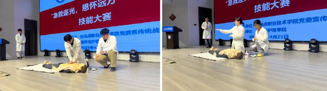 技能提升 以竞赛锤炼本领,以专业赋能成长 立足学科专业特色,以“以赛促学、以赛促练”为导向,助力学子提升专业能力与综合素养。康养与护理学院“急救逐光,恩怀远方”急救技术技能大赛,围绕单人徒手心肺复苏技术展开比拼,参赛团队沉着规范的操作,展现了“守护生命”的专业素养,赛后院长刘辉强调“急救技能是生命防线,需做到‘快、准、稳’”,为学子专业成长指明方向;公共教学部“心向暖阳,英韵飞扬”英语演讲比赛,24名决赛选手用流利英语讲述中国传统文化、绿色环保理念与青春奋斗故事,高萌、曹淇惠等选手脱颖而出,成为“中国声音”的青年传播者。