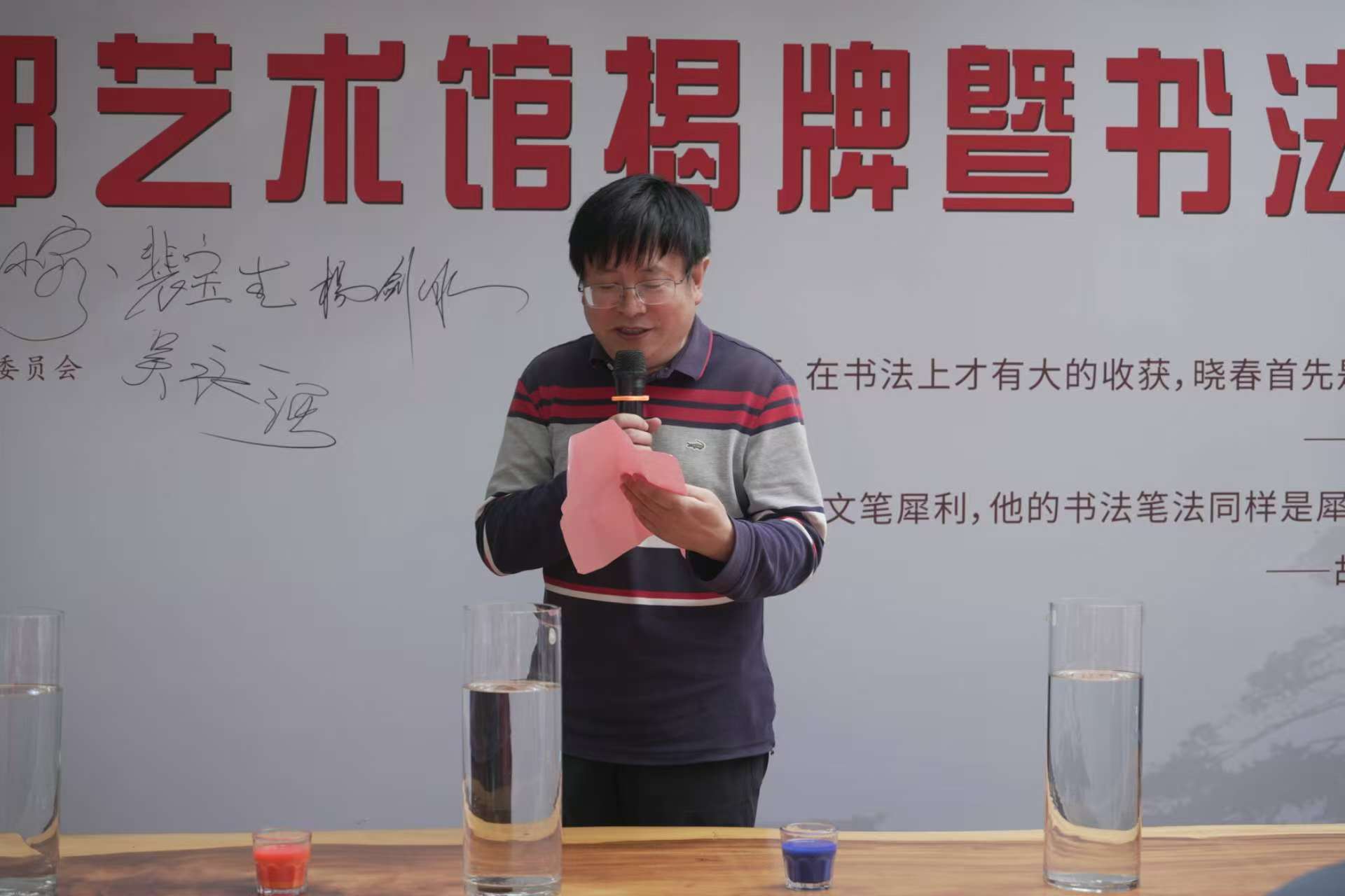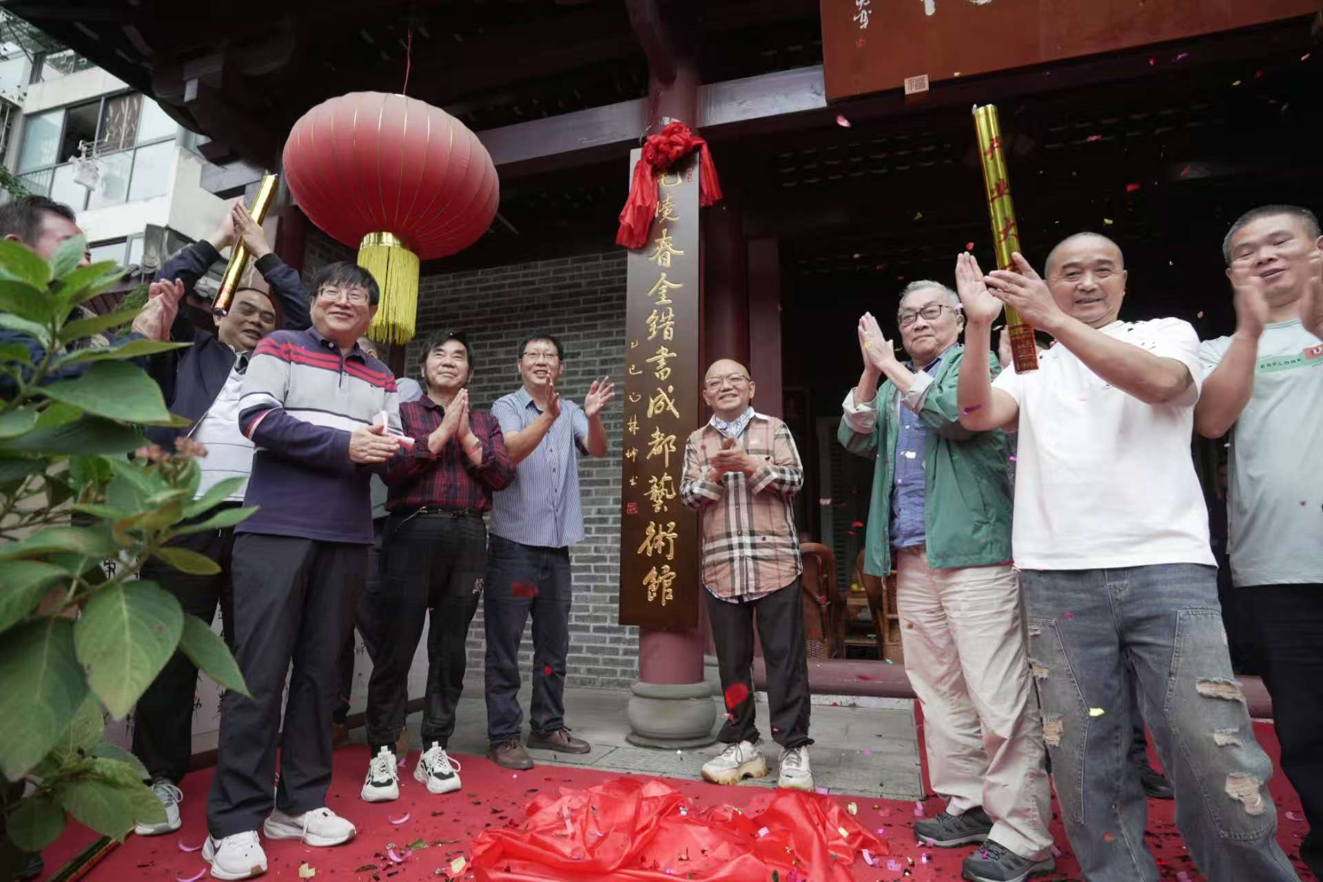 活动现场 成都市博物院书画艺术院院长、著名书法家邓代昆则评价道:“毛晓春的金错书书法开创了书法领域的新先例,为书风开辟了新天地。他的创作既敢于大胆创新,又深度继承传统,为广大艺术家的艺术创作提供了新思路、新道路。” 作为金石篆书 “金错书” 唯一传承者,毛晓春先生深耕金石篆籀多年,在金错书领域独树一帜。其书法艺术作品兼具深厚文化底蕴与鲜明个人特色,尤其篆书、隶书作品,被权威专家赞为 “上追殷商甲骨之遗风,下逮金石秦篆之余韵”。此次毛晓春金错书成都艺术馆的建立,既是成都市重视传统文化书法艺术的生动体现,也为全面展示毛晓春金错书艺术搭建了重要窗口,更成为保护、传承金错书这一书法遗产的关键举措。 开馆揭牌仪式由四川省散文诗学会副会长兼秘书长宓月主持,天水市文联、珠海市古元美术馆等单位发来贺电对毛晓春金错书成都艺术馆开馆揭牌祝贺。活动由中国通俗文艺研究会主办,中国通俗文艺研究会人文专业委员会、非遗专业委员会等承办,四川汉兴祠文化旅游发展公司等单位协办。