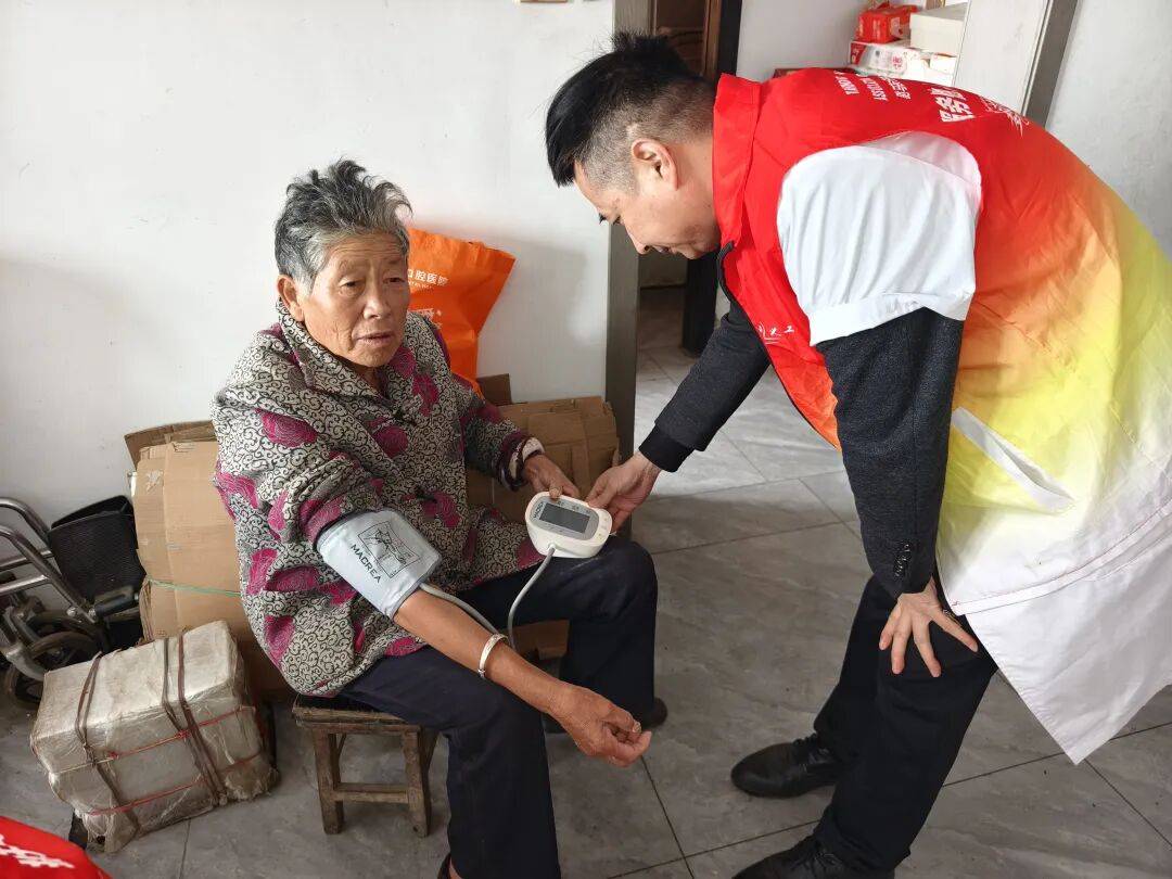 在“敬老月”活动纵深推进之际,10月14日上午,驻马店市天中义工联合会省级示范培养项目“幸福来敲门”在前张社区,聚焦社区孤寡、残疾老人群体需求,开展健康关怀、生活帮扶、情感陪伴等综合性志愿服务,以“零距离”服务传递社会温暖,助力构建老年友好型社区。 活动当天,天中义工联合社区卫生服务中心医护人员,为7户独居、残疾老人提供入户健康检查。志愿者们为老人测量血压、血糖,耐心讲解慢性病管理知识,并针对高血压、关节炎等常见病症提出日常护理建议。