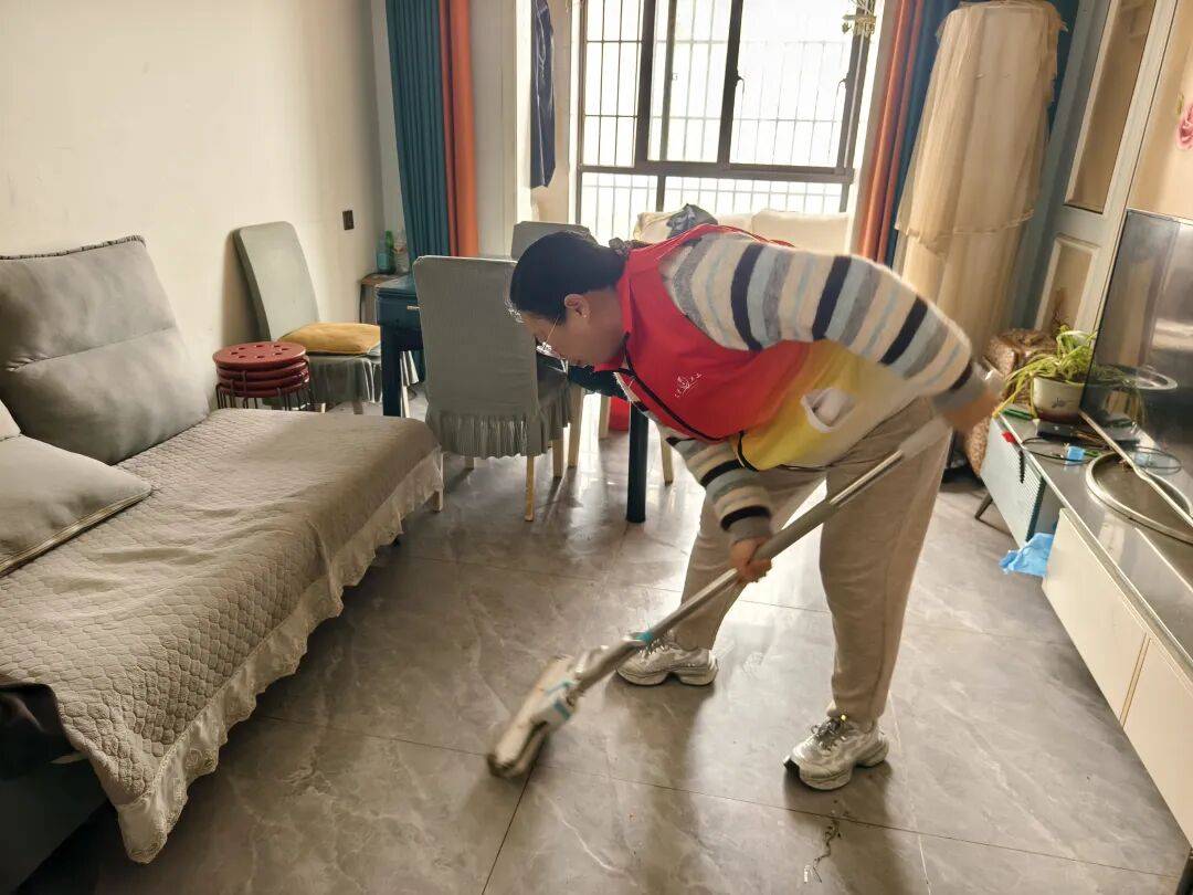 义工团队分组对社区内行动不便老人的居住环境进行全面清洁。志愿者们手持扫帚、抹布等工具,清扫地面、擦拭家具、整理杂物,还对厨房油污、卫生间卫生死角进行重点清理。
