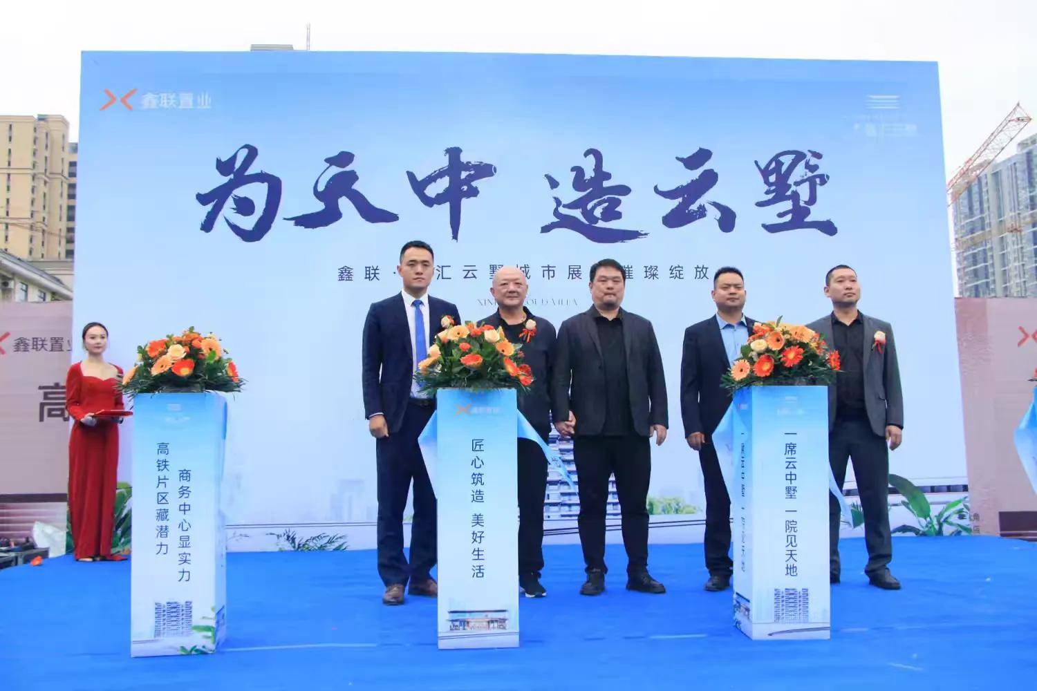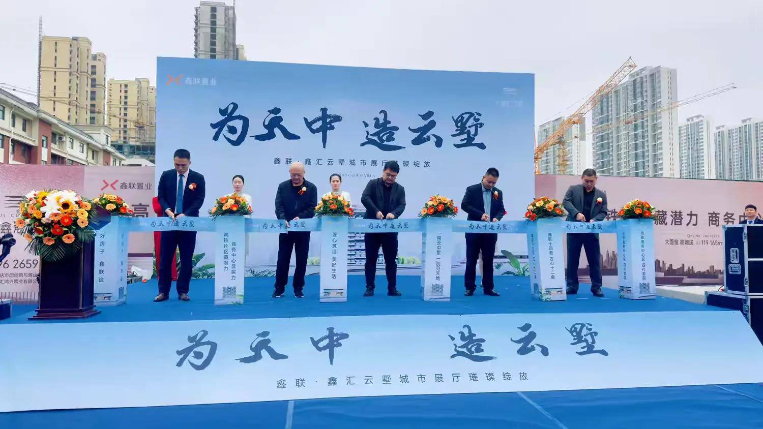 在现场来宾的共同见证下,河南鑫汇鸿兴置业有限公司项目总经理马小东、河南鑫汇鸿兴置业有限公司鑫汇云墅项目营销总监李伟、贝壳驻马店城市公司新房部负责人李贺冒、合纵新房部负责人吴飞、天中亮剑网总编辑袁峰等领导嘉宾共同登台,为开放仪式剪彩。金剪落下,礼炮齐鸣,标志着鑫联·鑫汇云墅城市展厅正式璀璨绽放。