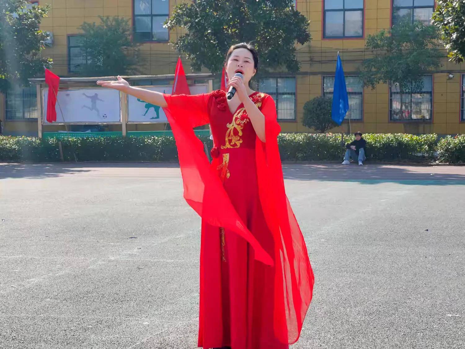 八年级学生的旗操《红旗飘飘》中,鲜艳的红旗迎风招展,与同学们的青春笑脸相映成趣;最后,朱红丽老师带来的歌曲独唱《阳光路上》,歌声悠扬,充满了对美好未来的憧憬。