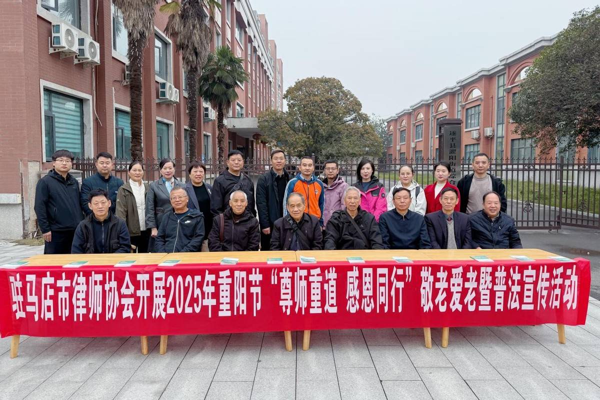 为进一步弘扬孝老爱亲传统美德,表达对律师前辈的崇高敬意和感激之情,体现驻马店市律师行业的人文关怀,助推驻马店市律师行业的健康发展,10月25日,市律师协会关爱委、青工委联合组织老中青律师赴遂平开展“尊师重道 感恩同行”2025年度重阳节敬老爱老暨普法宣传活动。
