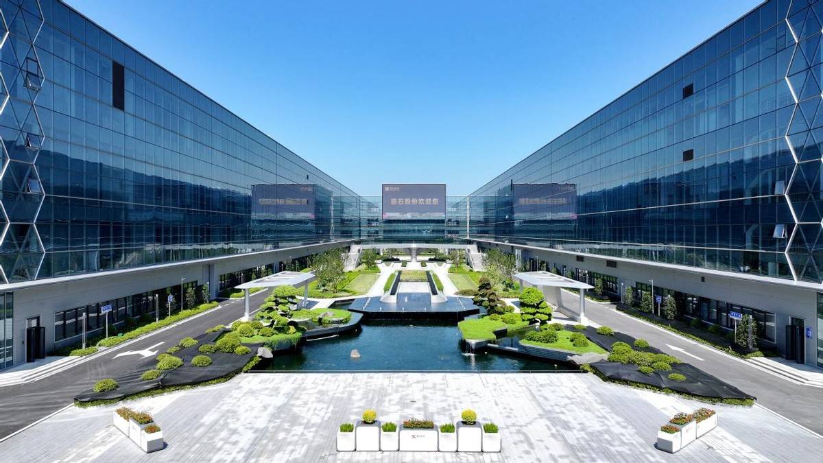 生态与生产共生的绿色工厂 振石股份新材料产业园秉持“工业文明与自然共生”的理念,将绿色基因深植于工厂的每一个角落。园区建成了桐乡规模最大的光伏屋顶停车场,预计光伏安装总量可达28MW,年发电量可覆盖部分生产用电需求,实现“自发绿电、自用绿电、自供绿材”的零碳循环。屋顶车棚与光伏一体化设计,不仅节约土地资源,更将清洁能源直接注入生产链条,减少碳排放。 漫步园区,随处可见“花园式”生产空间的匠心布局:绿树环绕的车间、景观与厂房交错,形成“移步换景”的生态画卷。这里严格遵循“园林工厂要保持常绿”的要求,生产与生态并非对立,而是和谐共融。通过科技与传统工艺的结合,振石构建了一套生产与生态融合的可持续发展模式——从原材料采购到产品出厂,绿色理念贯穿全生命周期,助力“双碳”目标实现。
