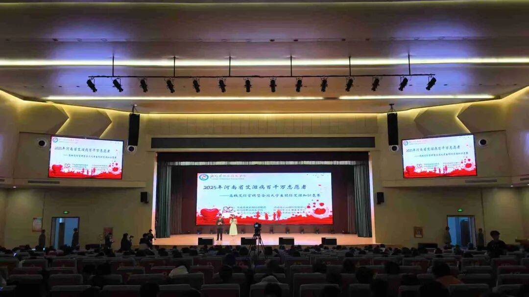 2025年11月25日,第38个“世界艾滋病日”来临之际,由河南省疾病预防控制局、省疾控中心主办,驻马店市卫健系统联合驻马店职业技术学院共同承办的“河南省百千万志愿者高校防艾宣传暨全国大学生预防艾滋病知识竞赛活动”在驻马店职业技术学院圆满举行,近千名师生齐聚现场传递防艾正能量。 本次活动以“动员青年力量,筑牢健康防线”为核心,河南省疾病预防控制中心性病艾滋病防治研究所所长张国龙、防艾专家樊盼英,驻马店市卫健委副主任、疾控局局长王勇,驻马店职业技术学院副校长李凤霞等领导专家出席。活动伊始,防艾主题展板、剪纸艺术展吸引众人驻足,与会者在签名墙签名并佩戴红丝带,以实际行动表达抗艾决心。