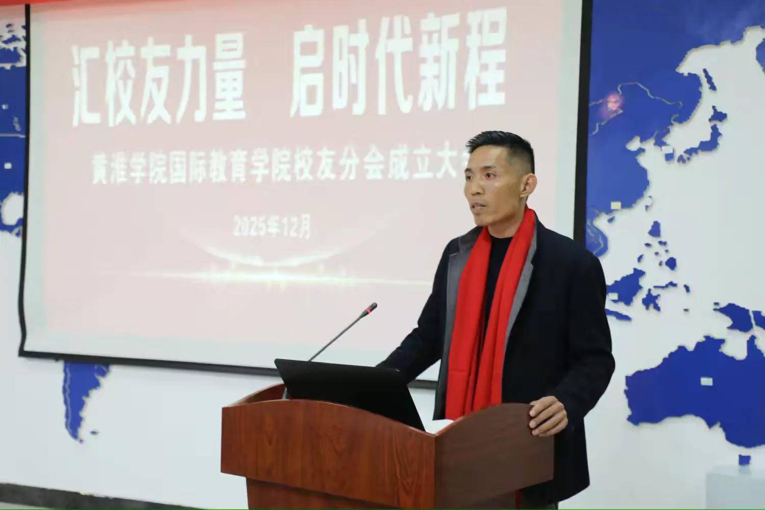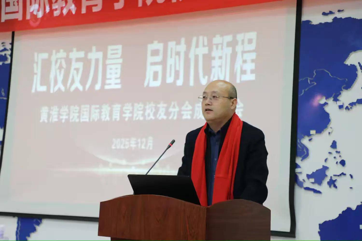 会上,黄淮学院国际教育学院院长王保宇致欢迎词,他代表学院向出席大会的各位领导、嘉宾及校友代表致以诚挚欢迎,向长期以来关心支持学院建设发展的各界校友表示衷心感谢,他简要介绍学院办学以来的基本概况、人才培养成效及未来发展规划,阐明校友分会是联结母校与校友的重要桥梁纽带,其成立对凝聚校友力量、整合优质资源、助力学院高质量发展具有重要意义,并现场宣读国际教育学院校友分会当选负责人及理事名单,为分会规范高效开展工作奠定组织基础。