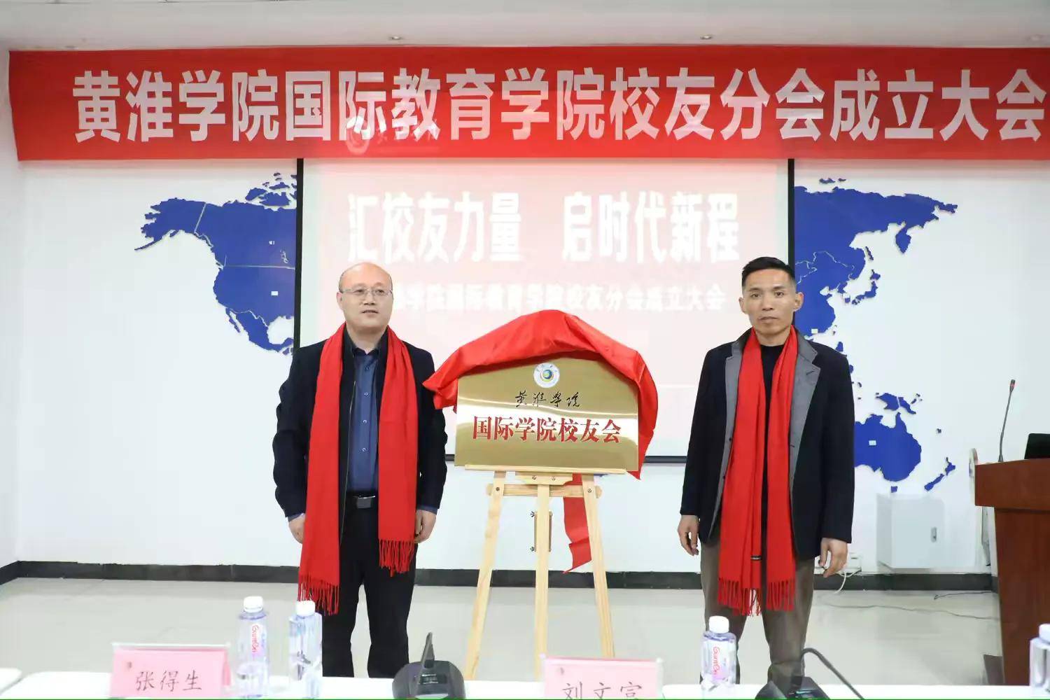 大会最后,黄淮学院副校长刘文富与黄淮学院国际教育学院校友分会会长姜光辉共同揭牌,标志着黄淮学院国际教育学院校友分会校友会正式成立。