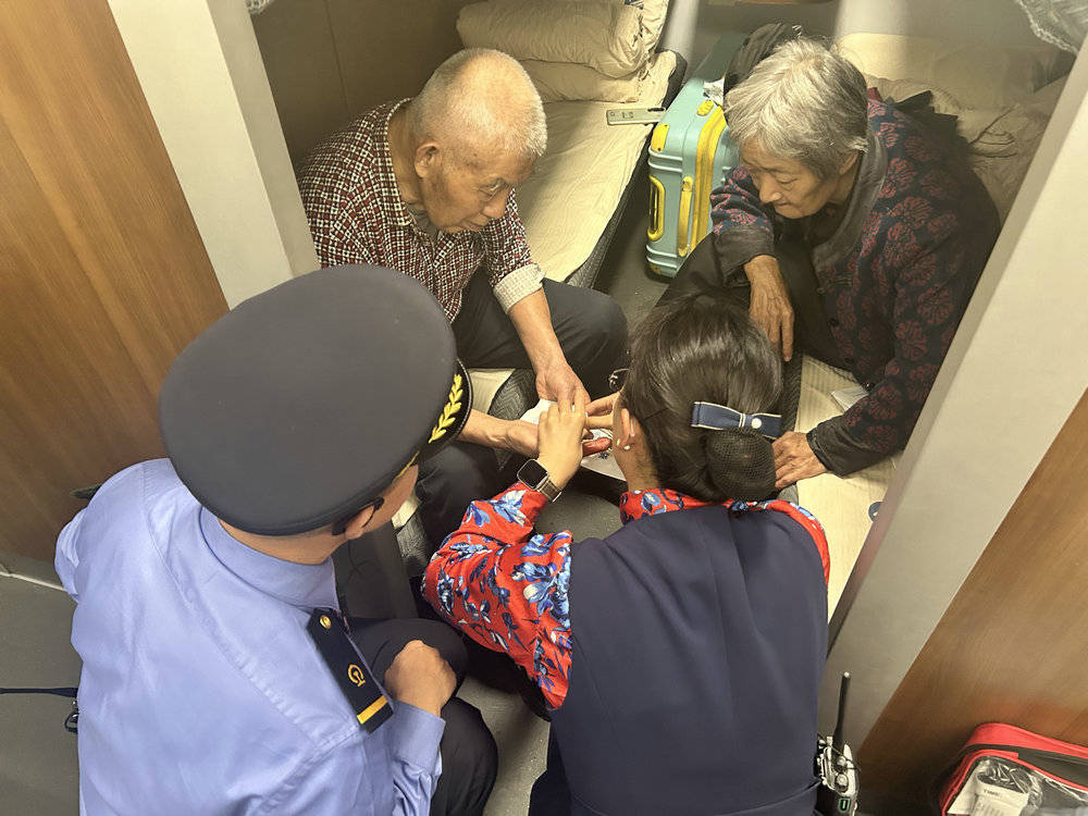 “是刀片啊,我先给您消毒。”救护员说着,换上了碘伏棉签,给伤口消毒。老先生忍不住“嘶”地吸了口气。老伴在旁边紧紧握着他另一只手。消完毒,王亚楠从药箱里拿出纱布块,按在伤口上,又用医用胶带仔仔细细地缠绕了几圈,让老先生自己按压一会伤口,血总算给止住了。 “伤口有点深,但暂时止住血了。您下车后最好去医院看看,可能要打破伤风针。”红十字救护员王亚楠一边收拾用过的棉签,一边仔细叮嘱。桑永刚列车长在旁边一直询问着老先生的身体状况,并交代该车厢乘务员张益博一定要特殊关注两位老人。老先生和老伴连连点头,脸上的慌张也慢慢退了下去,不停地说:“谢谢,谢谢你们啊,太麻烦大家了。” 一场小小的意外,最终化险为夷。对铁路工作人员而言,这既是职责,更是日常工作中必须时刻准备应对的场景。我们始终将旅客的安全放在首位,列车配备的急救药箱、经过培训的红十字救护员,以及完备的应急联动程序,正是为了在旅客需要时,能够第一时间提供专业、有效的帮助。在此也温馨提示广大旅客:出行时请妥善收好行李中的锐利物品,避免类似意外发生。旅途漫漫,您的平安,是我们最大的牵挂!(王淮) |