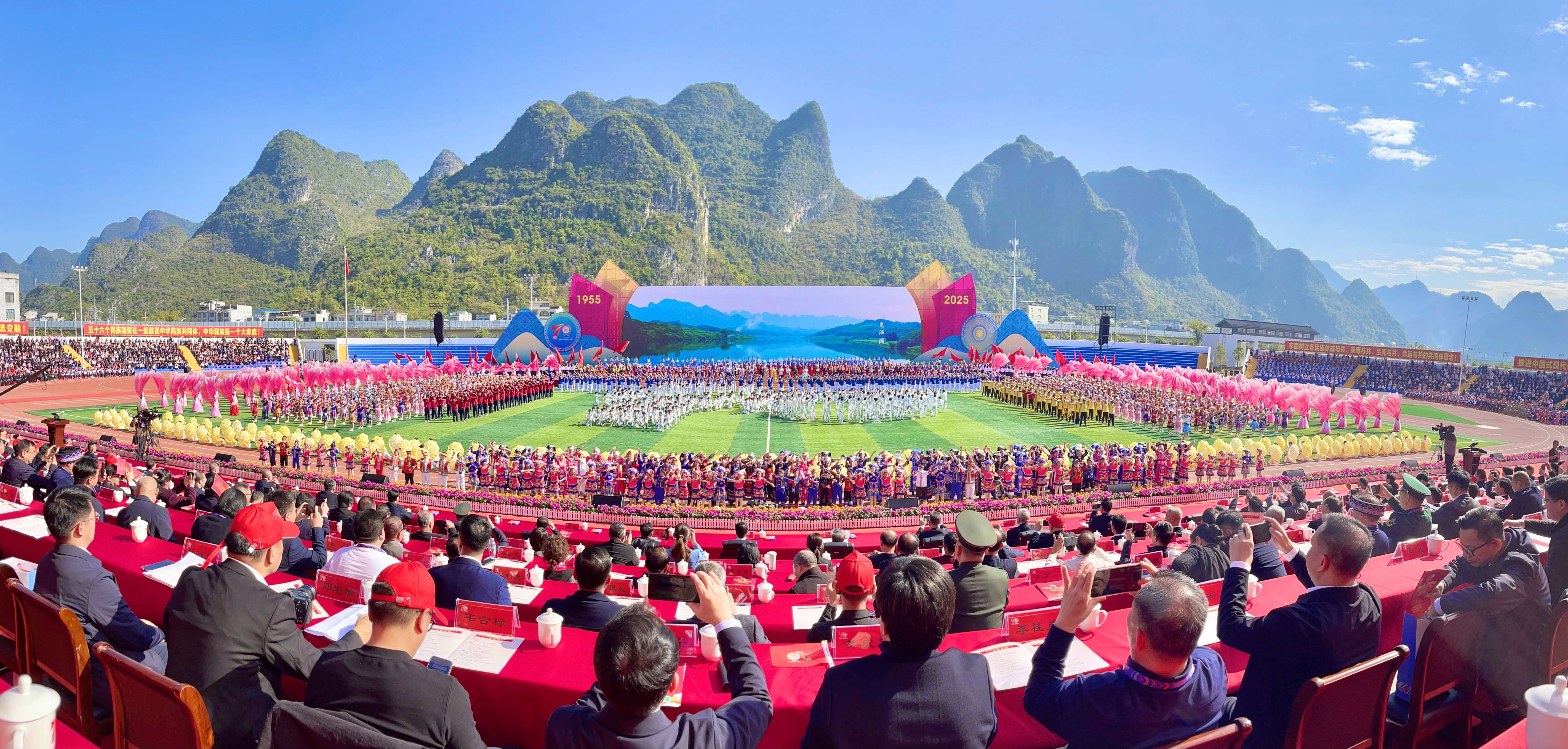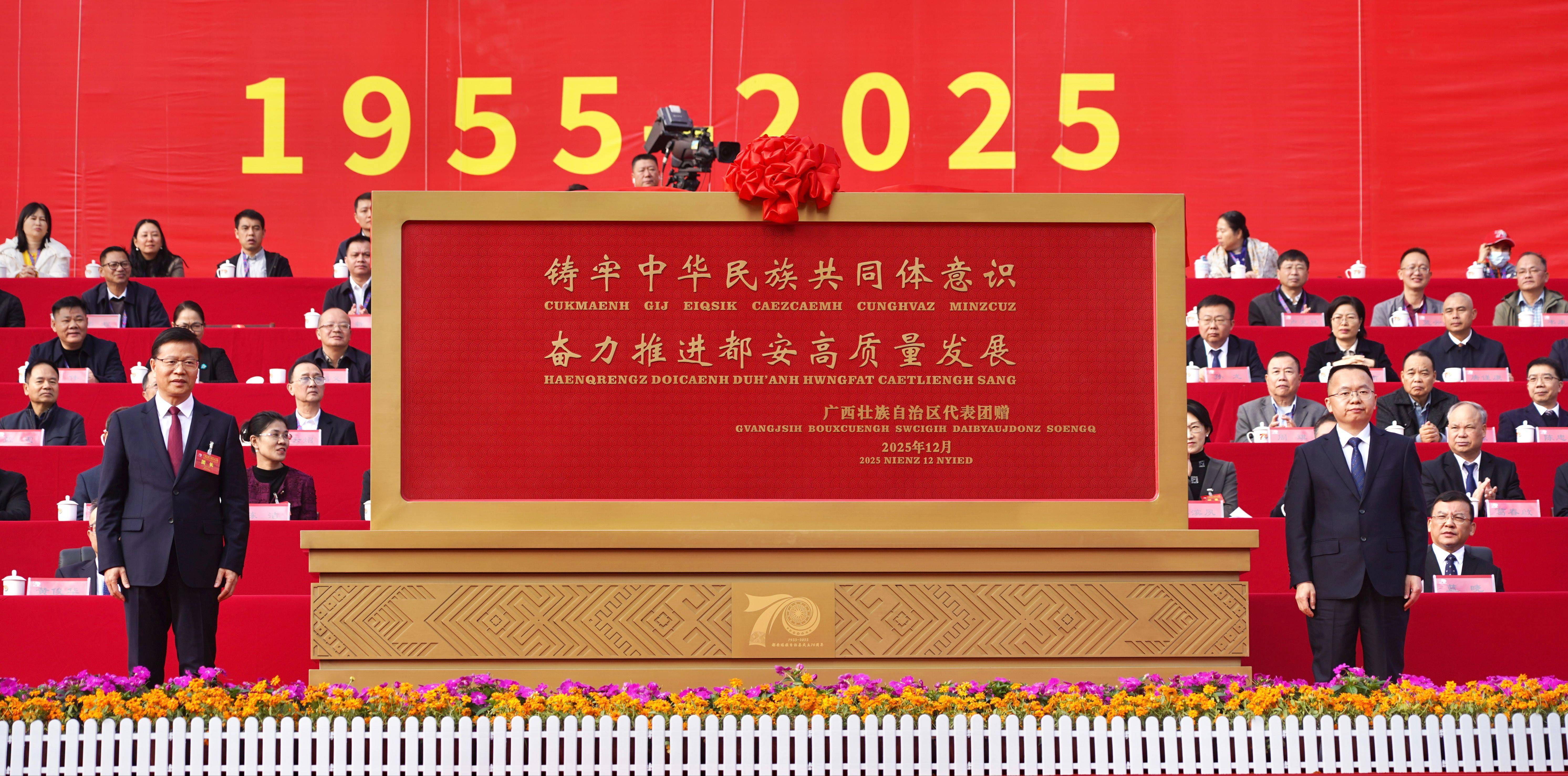 受自治区党委书记、自治区人大常委会主任陈刚,自治区主席韦韬的委托,谭丕创代表自治区党委、自治区人大常委会、自治区人民政府、自治区政协、广西军区和全区各族人民,向都安各族群众表示祝贺。谭丕创指出,70年来特别是新时代以来,都安各族干部群众接续奋斗、砥砺前行,经济实力稳步提升,乡村面貌焕然一新,绿色发展成效显著,人民生活蒸蒸日上,民族团结持续巩固,取得了辉煌成就。在“十四五”迎来收官、“十五五”即将开局的特殊节点,都安要坚持和加强党的全面领导,确保都安各项工作始终沿着正确方向前进。要完整准确全面贯彻新发展理念,加快推动都安经济社会高质量发展。要践行以人民为中心的发展思想,努力让都安各族人民过上更加幸福美好的生活。要坚持铸牢中华民族共同体意识工作主线,巩固发展民族团结进步良好局面。