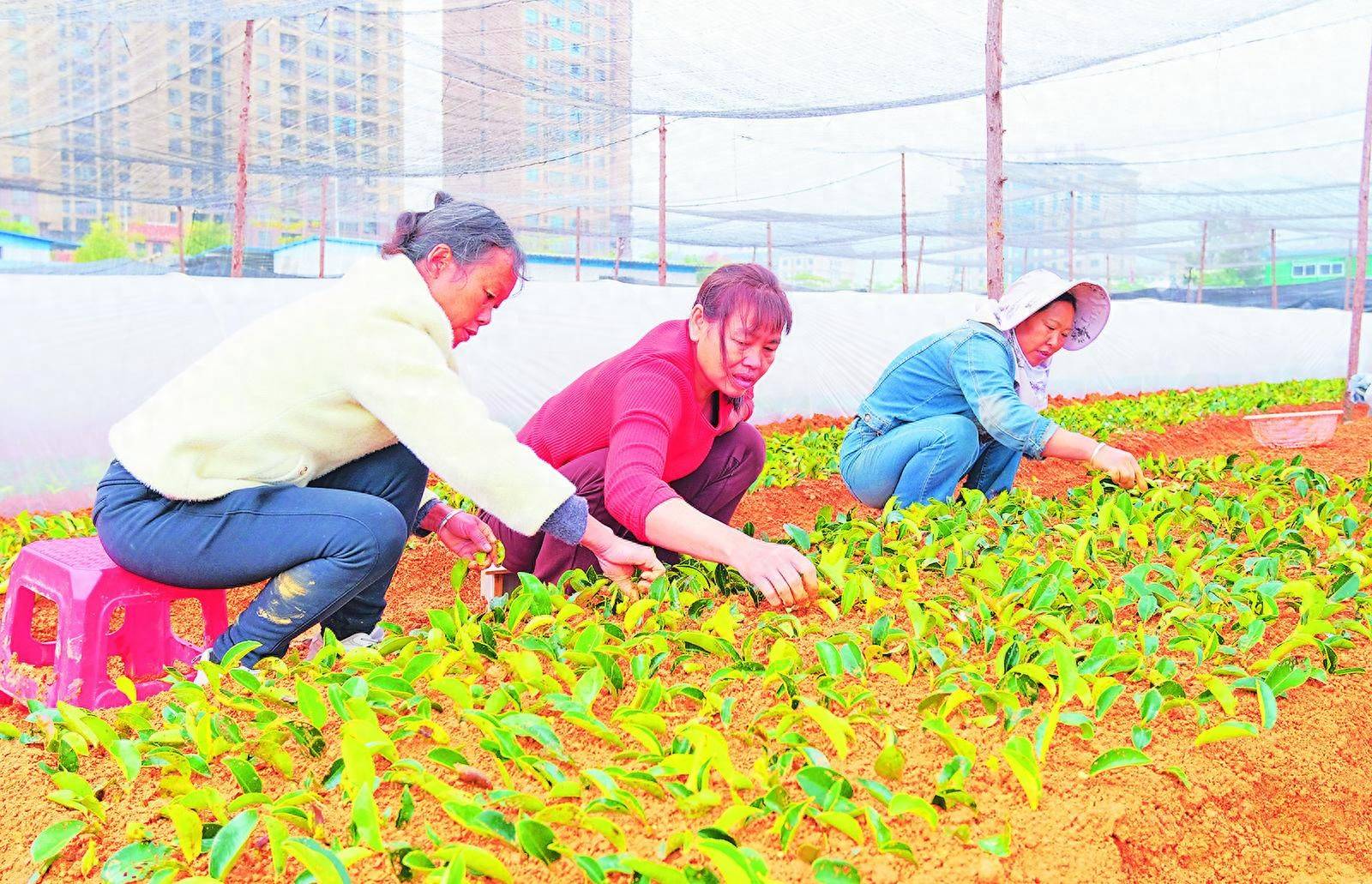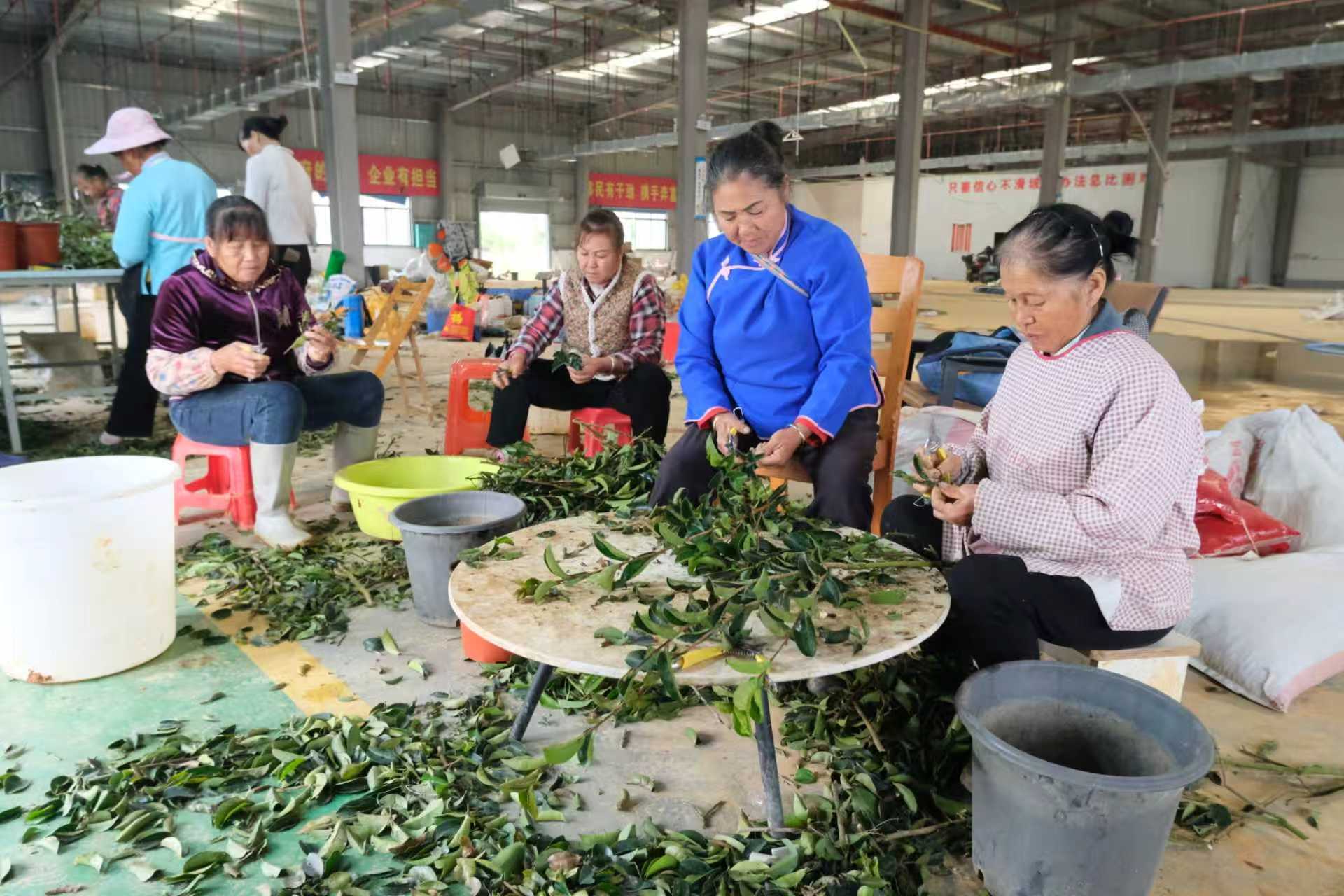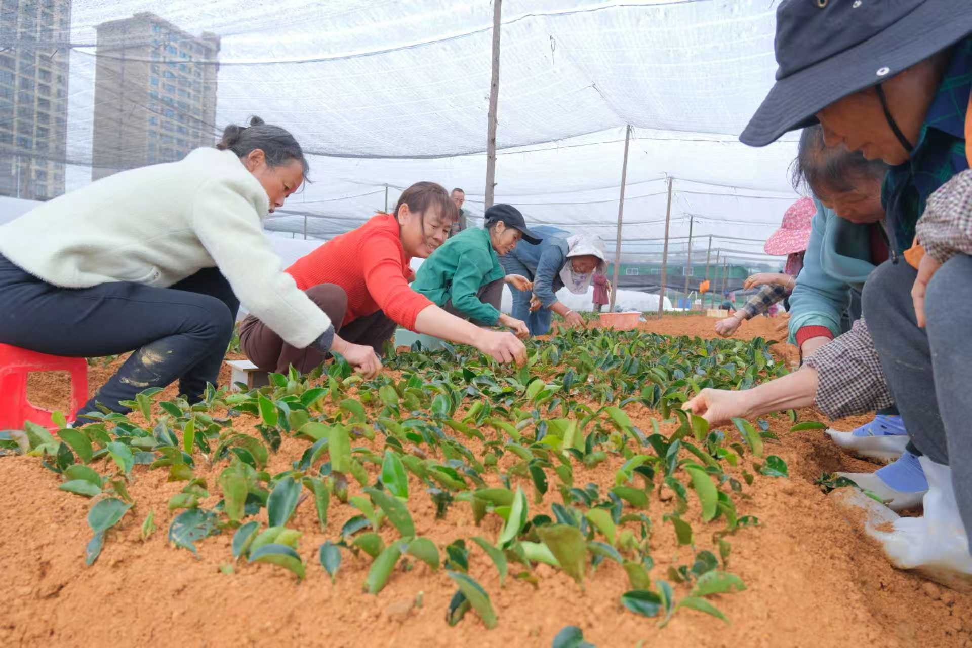 务工人员在进行香花油茶的插扦育苗。 剪枝、扦插、浇水、搭棚……12月17日,广西百色市雪慧农业有限公司的香花油茶育苗基地里一派繁忙,几十名务工人员正有条不紊地进行育苗作业。他们大多来自周边社区,利用空闲时间前来务工,其中不乏脱贫群众。 “我们就住在附近,基地一有活我就来,一天能挣100多元。真没想到来城里带孙子,还能顺便赚点零花钱,比外出打工踏实多了。”务工人员庾圈告诉记者,她已通过务工在这里获得1万多元的收入。