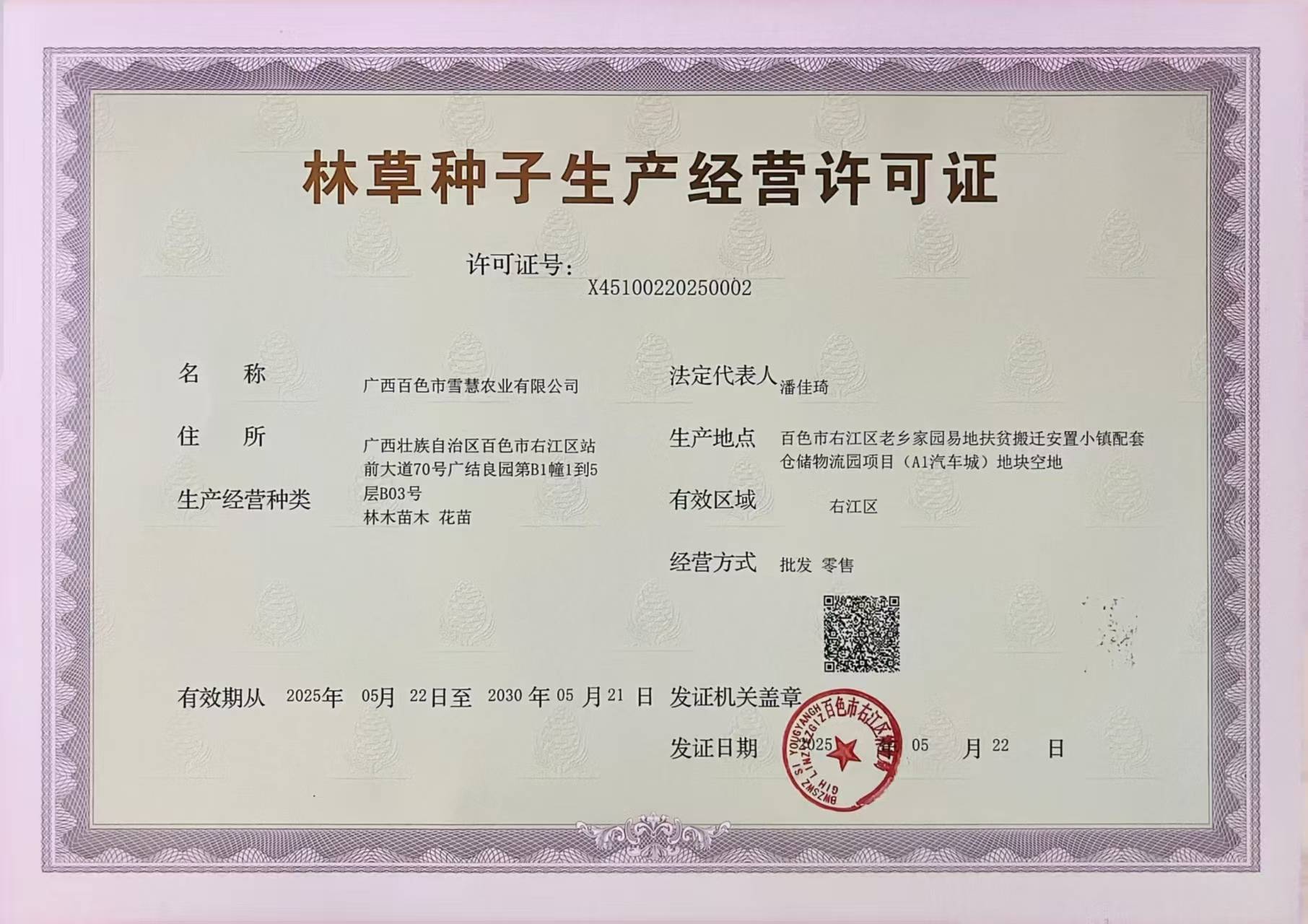 在育苗过程中,雪慧农业基地严格执行枝条来源备案制度,确保品种纯正,并主动邀请市、县林业部门专家现场指导,不断提升标准化、现代化水平,为全市油茶产业规模化发展夯实种苗根基。目前,该基地培育的500万株香花油茶苗已全面达标出圃,自12月进入销售旺季以来,累计签约订单超800万株。“我们的苗目前主要供应百色市各县(市、区),未来计划面向全国,并推广至东南亚。”广西百色市雪慧农业有限公司负责人王建鹏说。