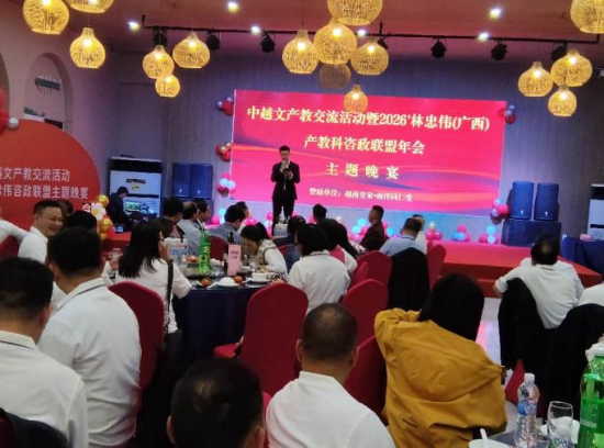 ——“中越文产教交流活动暨2026'林忠伟(广西)产教科咨政联盟年会”纪实 2025年12月13日至16日,林忠伟(广西)产教科咨政联盟百人代表团跨越山海,赴越南开展年会及系列文化、教育、产业交流活动。四天时光,如一幅徐徐展开的壮美长卷:北仑河畔的琴瑟和鸣,奏响合作序曲;下龙湾上的千帆竞发,扬起希望之帆;壮锦铜鼓的千年回响,诉说文化渊源;双语同心的现代共鸣,激荡友谊长歌。中越两国同仁以文化为桥、以教育为帆、以产业为桨,在传统与现代的交融中,共同书写了一段“同志加兄弟”的深情佳话,为两国文教合作与民心相通注入了蓬勃生机。