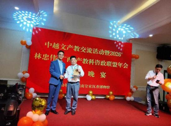 北仑潮声启新程 红河星火照长天 12月13日,冬阳如金,洒在越南龙标省的红木峰峦上,为这场盛会披上一层温暖的光辉。中越双方代表齐聚一堂,以“品席列青瓷、茶烟袅凤绡”的雅致,拉开了年会的序幕。青瓷承汉韵,茶烟话越情,一席一盏间,尽显两国文化交融的细腻与深厚——那青瓷的温润,是中华文明的谦和;那茶烟的袅袅,是越南风情的悠扬。 “竹简承文脉,篆书铭教桥。” 会上,双方以竹简为信物,篆刻下“中越文教合作”的誓言。竹简轻,却承载着千年的文脉;篆书深,更铭刻着合作的初心。林忠伟主席站在台上,目光坚定而温暖:“中越两国文化同根同源,教育互鉴互促,产业互补共生。今日之盟,不仅是两国的携手,更是对先人智慧的传承,对未来希望的播种。我们愿以赤诚之心,与越南同仁共筑文教合作的新高地!”越南代表阮公动情回应:“越南有句古语‘同志为兄弟’,今日与中方同仁共聚,恰如兄弟重逢。我们必当同心同德,共赴新程,让中越友谊如红木般坚韧,如北仑河般长流!” “指印凝山海,光影织盟约。” 双方代表以指印为印,在卷轴上留下永恒的印记。这一指,是山海相连的承诺;这一印,是日月同辉的见证。会场外,北仑河波涛轻涌,仿佛在为这场跨越国界的友谊吟唱;天空中,星河初现,恰似两国未来合作的璀璨图景。那一刻,时间仿佛凝固,历史与未来在此交汇,中越两国的文教合作,正式踏上了新的征程。