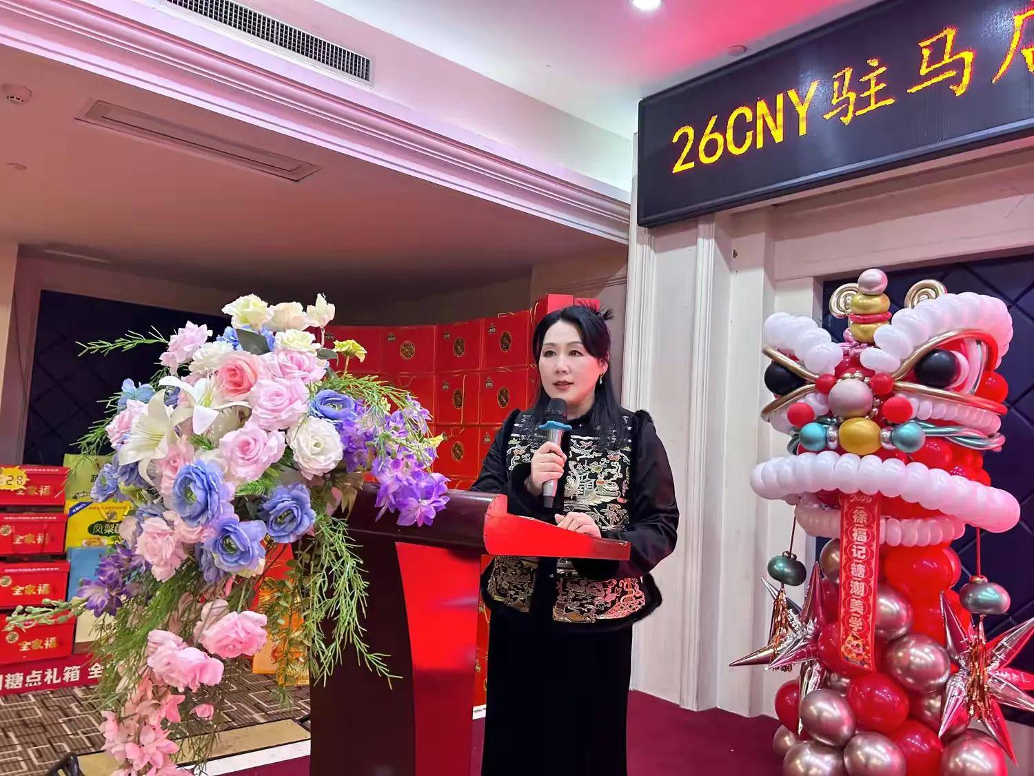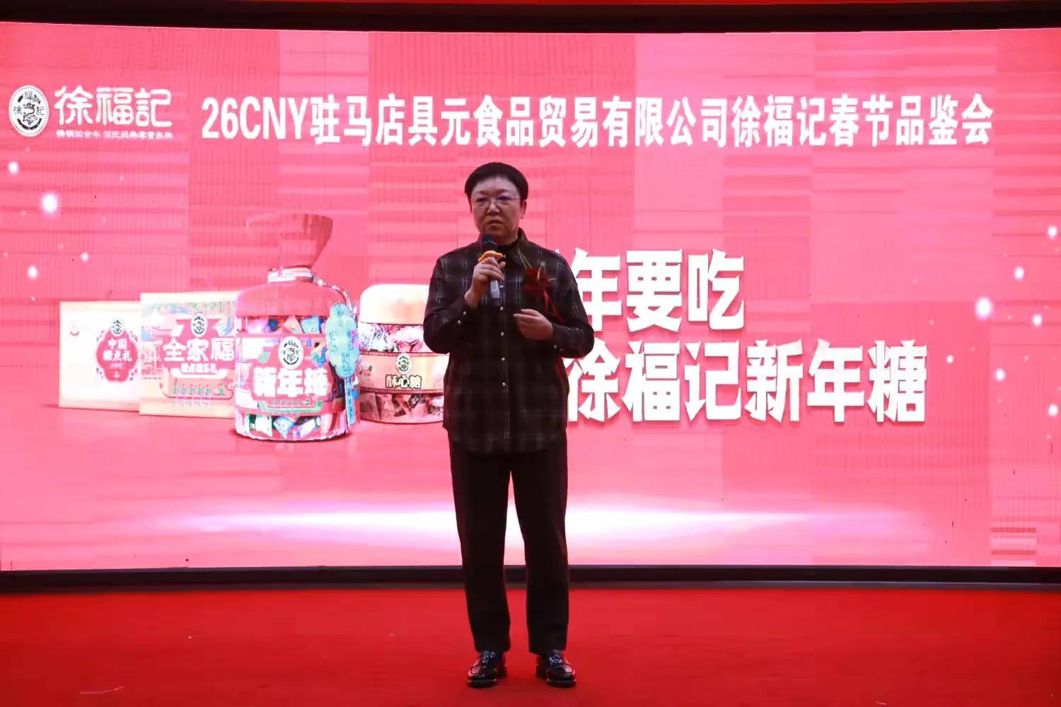 驻马店市具元食品贸易有限公司总经理吕春霞在致辞中对各位合作伙伴长期以来的支持表示感谢,并分享了具元食品深耕本地市场、坚守品质服务的发展理念。她表示,此次与徐福记携手打造“糖潮美学”的品鉴会,品牌将经典风味与国潮美学深度融合,带来全新升级的新年糖系列产品,既是为消费者带来高品质的新年味觉体验,更是希望以糖为纽带,深化多方合作,共同助力驻马店食品消费市场升级。