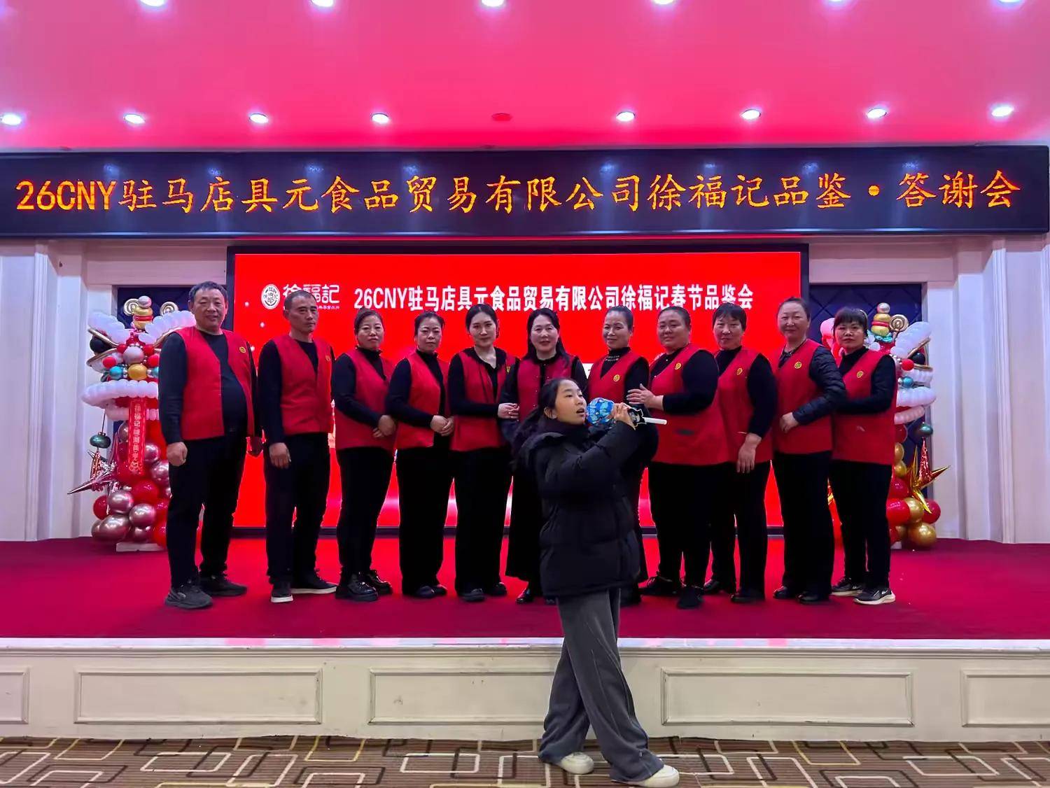 活动期间,三轮抽奖环节将氛围推向巅峰,与会领导先后为现场嘉宾抽取幸运奖品,一份份甜蜜好礼承载着满满的祝福,让现场欢声笑语不断。诗朗诵《美丽中国》的深情演绎传递家国情怀,驻马店市具元食品贸易有限公司员工团队的风采展示则展现出团结奋进、热情昂扬的企业风貌,赢得阵阵掌声。活动尾声,全体领导嘉宾移步舞台前方合影留念,定格这一美好瞬间。