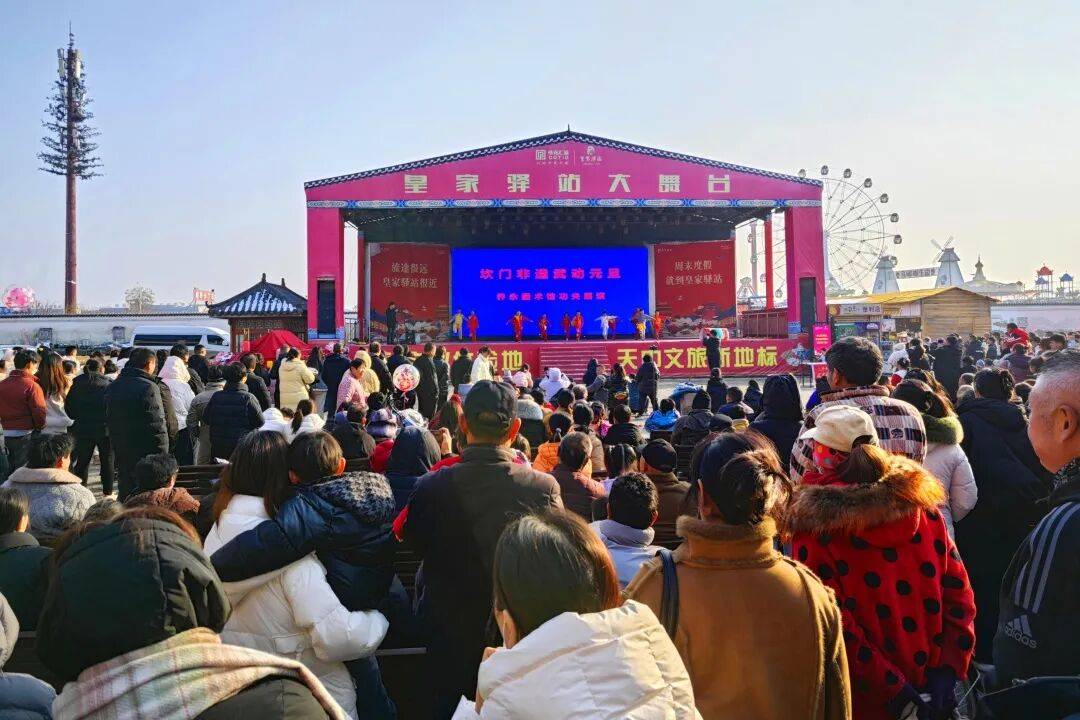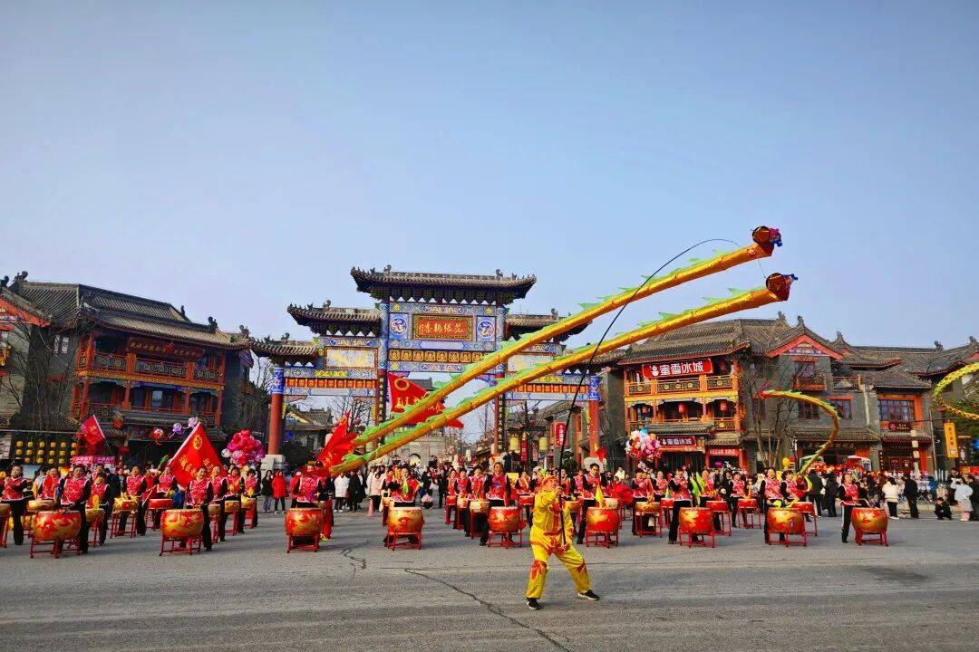 寒潮挡不住热忱 古韵点燃新年 2026年元旦假期圆满收官 皇家驿站以一场场精彩纷呈的演艺盛宴 吸引八方游客纷至沓来 三天累计接待游客5.4万人次 青石板路上人潮涌动 古驿街巷间欢笑不绝 处处洋溢着浓厚的新年氛围 一起来回顾一下元旦的精彩瞬间吧 这个元旦,皇家驿站化身欢乐的海洋,多种活动轮番上演。 喜庆的锣鼓声震天响,百名鼓手敲击大鼓,激昂顿挫的鼓点响彻云霄,彩带龙跟着节奏灵动翻腾,龙头高高扬起、龙尾顺势摇摆,时而盘旋升空如腾云驾雾,时而俯冲落地似探水寻珠,瞬间将节日的热烈气氛拉满。