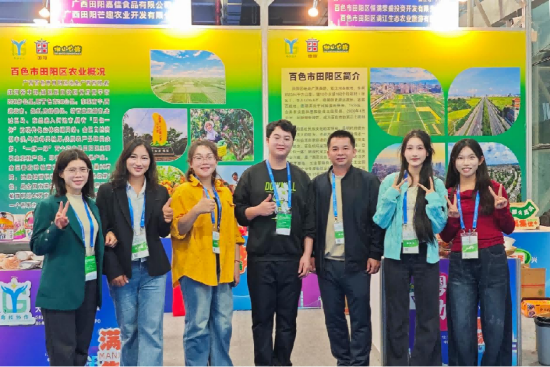 12月12日—14日,韦佳期(右一)、刘小凤(右二)受百色市田阳区商务局邀请,在广州参加2025大湾区农产品交易会暨土特产