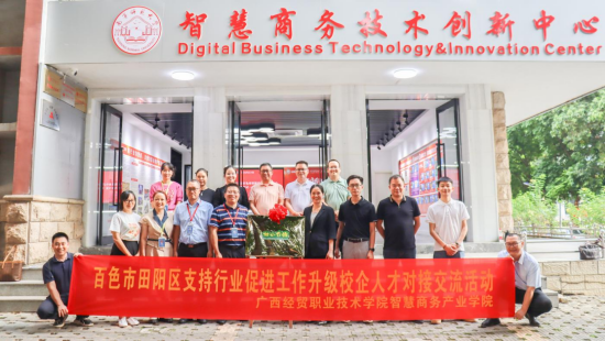 广西经贸职业技术学院智慧商务产业学院(下称学院)服务地方的实践,建立在扎实的机制基础之上。2023年10月,学院与百色市田阳区商务局、百色市田阳区电子商务协会合作共建“百色市田阳区电商人才服务站”,旨在为地方电商产业发展提供稳定的人才支撑,架起人才直达产业一线的桥梁。 合作的深度与温度在随后持续加深。2024年3月,赵晓阳院长率领师生团队26人赴田阳区开展走访学习与直播助农活动,以专业技能为当地特色产业赋能。2025年7月,百色芒果飘香、销售旺季,百色市田阳区商务局根据当地企业的实际需求,与学院顺畅对接。学院选派了11名电商相关专业学生,进驻企业开展为期一个月的销售实战。学生们将课堂所学的直播技能、店铺运营、客户服务知识应用于真实市场,从产品拍摄、详情页制作到直播带货全流程参与。他们的专业和勤奋,不仅有效缓解了企业的燃眉之急,助力当地芒果电商销售水平提升,更让自身在真刀真枪的历练中迅速成长。正是基于这段“芒果季”的优异表现,百色市田阳区商务局向学生发出了前往大湾区展会、服务“桂品出乡”的邀请。