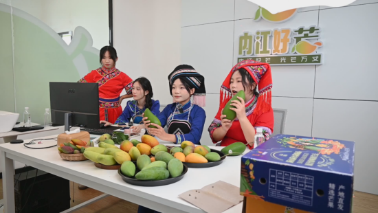 广西经贸职业技术学院智慧商务产业学院的学生在百色田阳直播