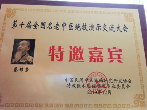 从医五十余年,所用中草药全部自采野生中草药、自制、自用,自加工。亲自带徒上山采集辨认草药,教授药理功用及临证应用。为做好中医药传承,几十年收徒从不收分文学费,家境困难的还无偿包食宿。别人收徒要几万学费的。蔡锦芳每年供养学徒食宿和发补生活费达二十余万。九江市卫健委领导陈玲珠局长亲自办公证正式拜我为师。这在全国也是唯一的。