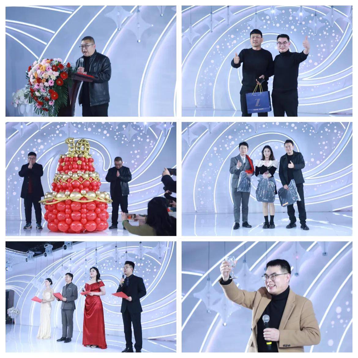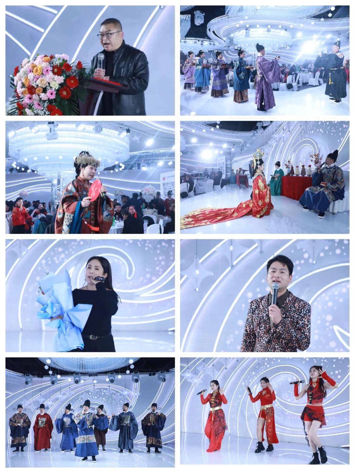 当晚18时30分,答谢晚宴在温馨的生日祝福中开启,十周年生日气球蛋糕登场,全场齐唱生日歌,氛围温馨感人。随后,阳光团队诗朗诵《天中婚礼人》、江南国风汉服秀《婚姻者》、凤裳阁念念汉婚嫁衣馆情景剧《三礼呈祥》、持麦者女团的舞蹈《大貔貅》等11个精彩节目轮番上演,赢得台下掌声阵阵,歌舞、相声、吉他弹唱等多种形式的表演,展现了婚庆人的多才多艺与行业活力,摇一摇抢红包活动更让庆典现场汇成一片欢乐的海洋。