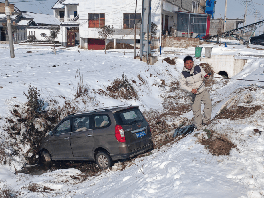 连日来,平舆县及周边地区遭遇强降雪天气,暴雪红色预警下的道路积雪结冰,给群众出行带来极大安全隐患,不少车辆在途中抛锚被困。1月21日上午,寒意未消、积雪未融,平舆强哥汽车城负责人郑凯强依旧驾驶着他的坦克400越野车,奔波在跨区域救援的路上,用免费救援的承诺与专业高效的行动,为风雪中的被困司机点亮回家的希望。 “救援是免费的,在救援过程中出现任何问题,你的车坏你修,我的车坏了我修,可以不?可以的话,那咱现在开始救援了。”在平舆县杨埠镇通往高杨店镇的乡村道路上,面对被困沟中的司机高师傅,郑凯强的话语掷地有声。简单直接的承诺,不仅打消了高师傅的顾虑,更在凛冽寒风中传递出温暖人心的力量。