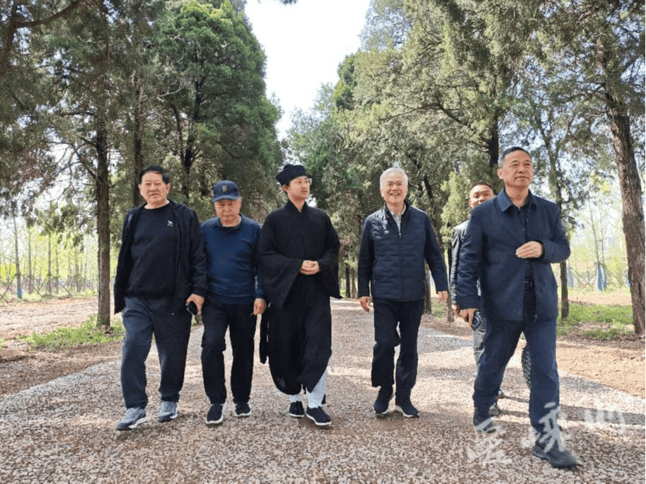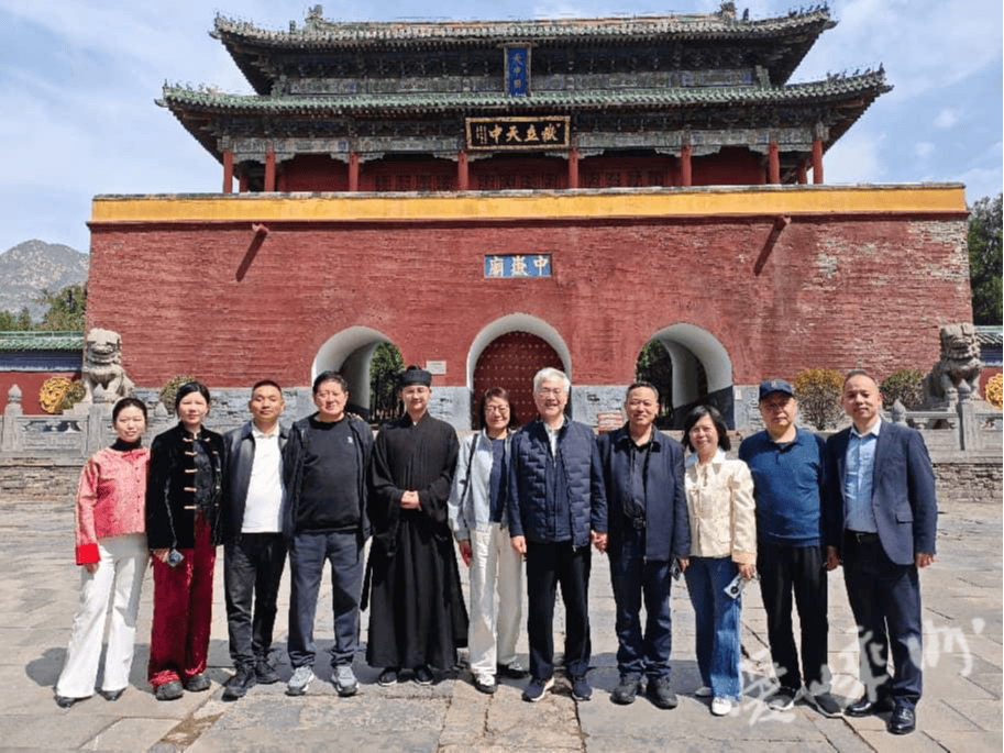 嵩山脚下,中岳庙古柏参天,碑碣林立,作为五岳之中规模最盛、保存最完整的道教古刹,藏着华夏文明的千年密码。山门高悬着汉东教授亲笔题写的“嶽立天中”金匾,鎏金大字庄重典雅,笔墨苍劲有神,与千年古刹交相辉映,成为中岳庙一道亮眼的人文景致。先生漫步青石古道,在001号国宝太室阙前久久驻足。两千年风雨剥蚀,阙身浮雕车马出行、神话百戏依旧清晰,勾勒出汉代社会的鲜活风貌。他轻抚石面,轻声慨叹:“这不是冰冷的石头,是活着的历史,是民族文化的根与魂。”随后与黄至杰方丈深谈文化保护,钱姓传承,赠以书画,笔墨之间,尽是对文脉传承的拳拳之心。 许昌三国古城的风烟,藏着中原大地的英雄气韵。虽未能全程相伴,却知先生步履所至,皆为文化探寻;目光所及,尽是历史深情。 汉东教授始终心系钱氏家族根基传承,对密县钱氏宗祠的建设工程尤为关切,参访期间专程赶赴建设现场实地查看、悉心指导,结合宗祠规制与文化传承提出诸多高屋建瓴的真知灼见,为宗祠建设指明方向。